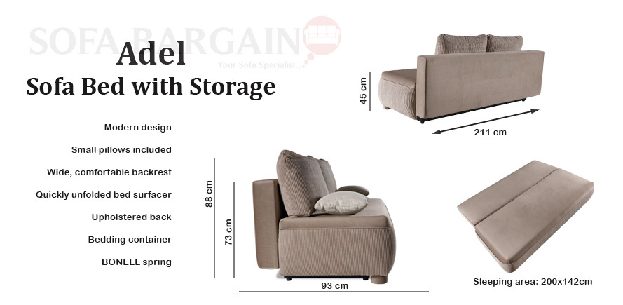 We cannot imagine a good sofa without a comfortable seat, firm backrest, interesting style, interesting appearance and the best quality of individual finishing components. All of the above-mentioned features are on the one hand to rest, relax and enhance the feeling of high comfort, and on the other - they are also to please the eye with a remarkable style that adds color to any home arrangement. How is it with you? If you are like us, you should definitely read this text on, because you may be interested in what we have to offer. Let your eyes turn directly to this unique Adel sofa! It is an exact reflection of all the important features that we are looking for in a piece of furniture that is to act as the heart of our living room. If you are also committed to what is the best - take an interest in our Adel Sofa Bed with Storage.