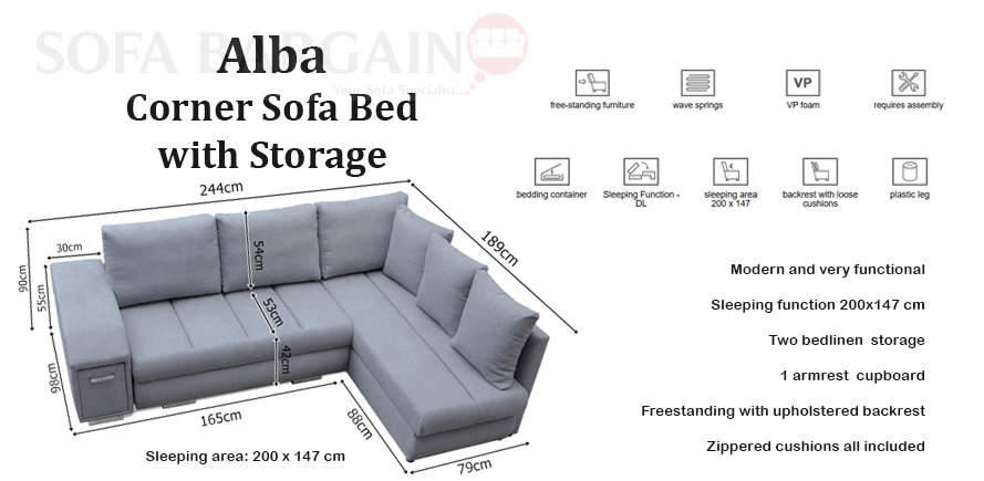 Stretch out or entertain in style with the Alba Corner Sofa Bed with Storage: