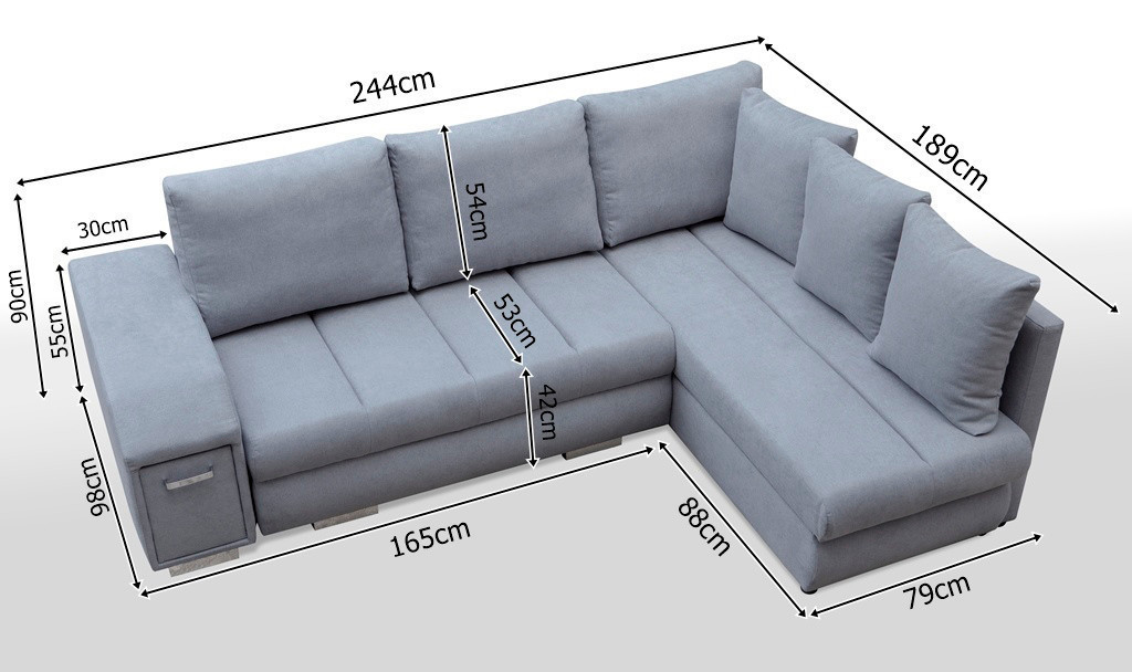 • Spacious Layout: 244 × 189 cm corner footprint, left or right corner configuration, fits snugly into your living space.