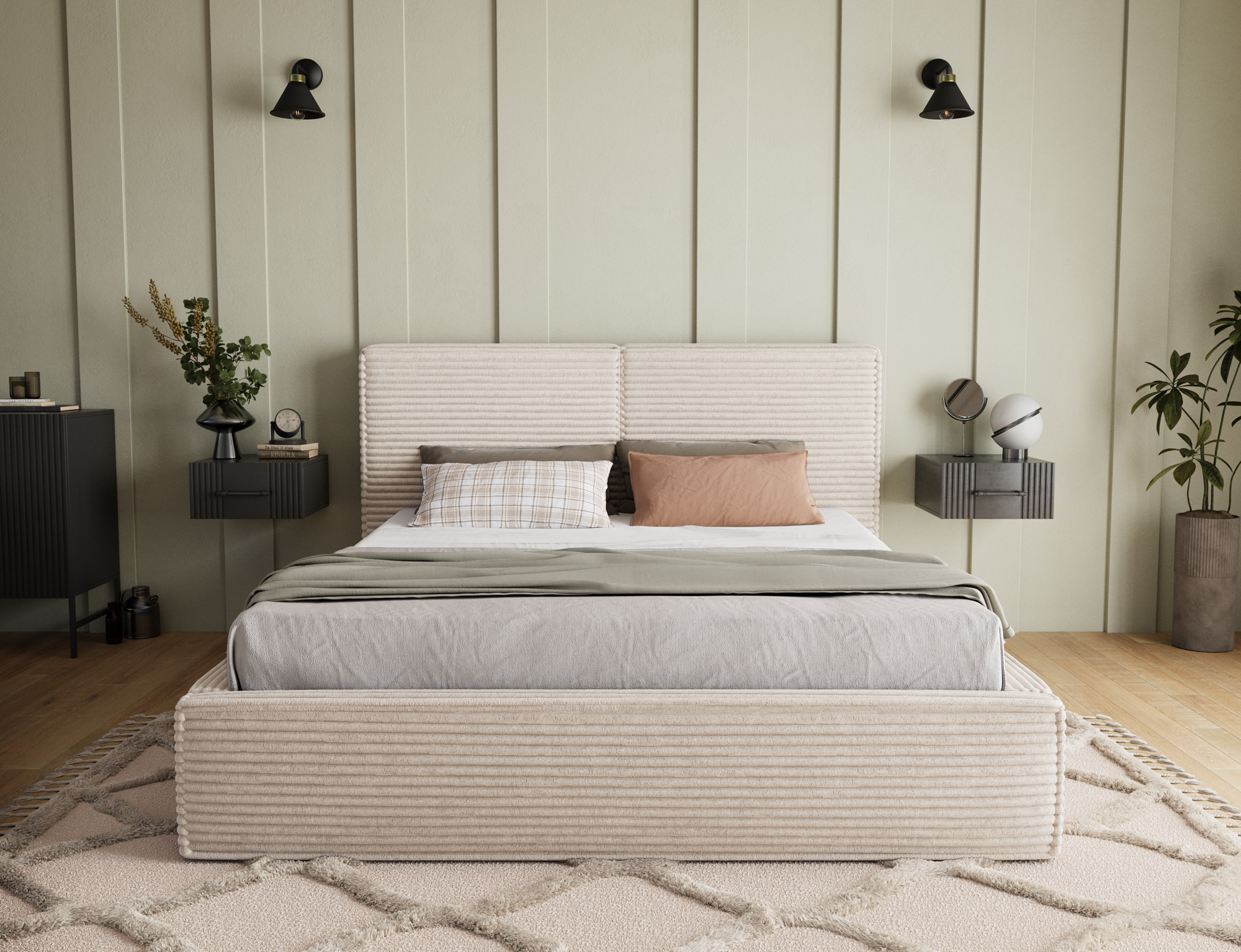 The Basel bed combines modern elegance with ultimate sleeping comfort. Its minimalist form, highlighted by subtle upholstery, fits perfectly into any bedroom – whether classic or contemporary. The soft, tall headboard provides excellent support for reading or relaxing, while the precise finishing details emphasize the bed’s luxurious character.