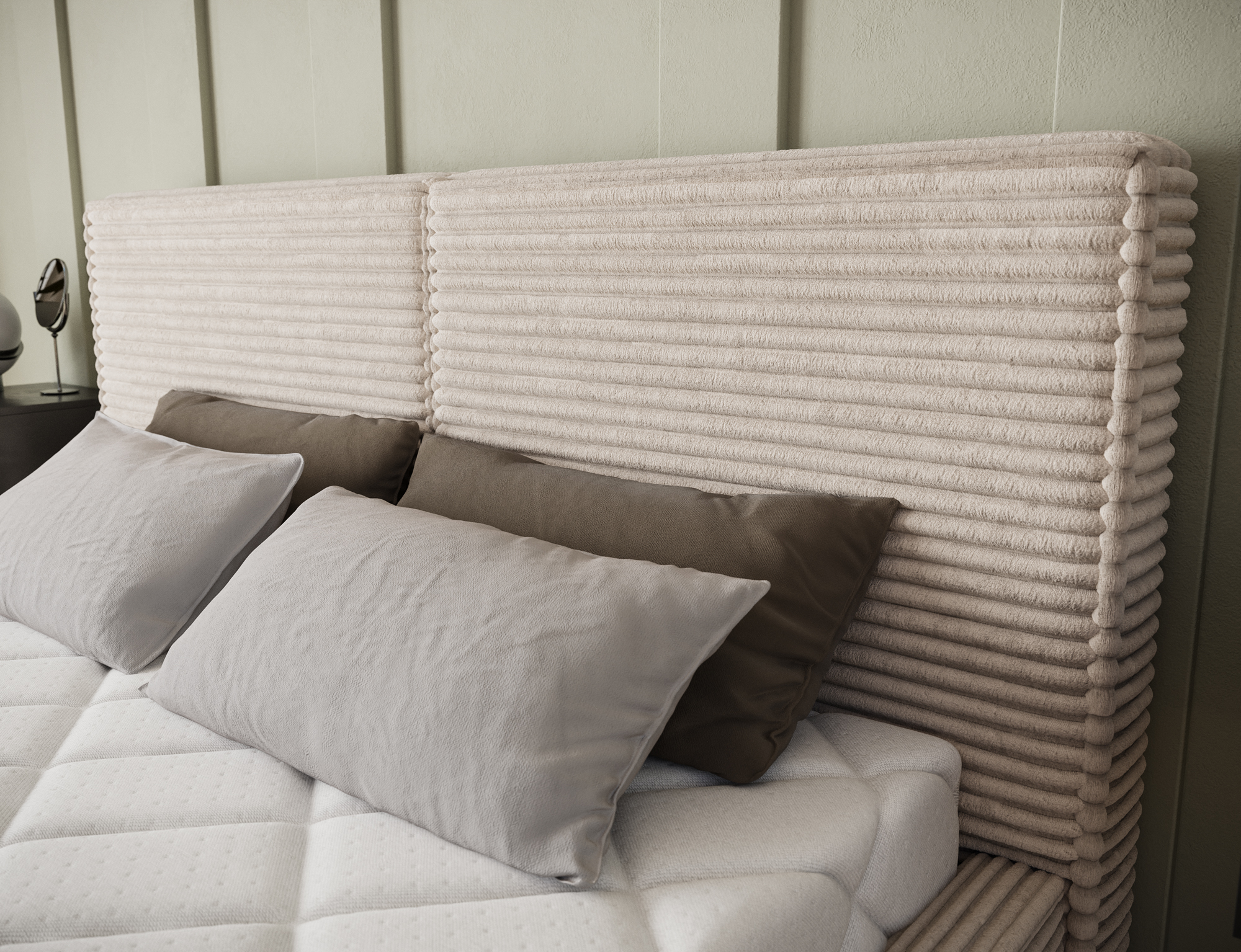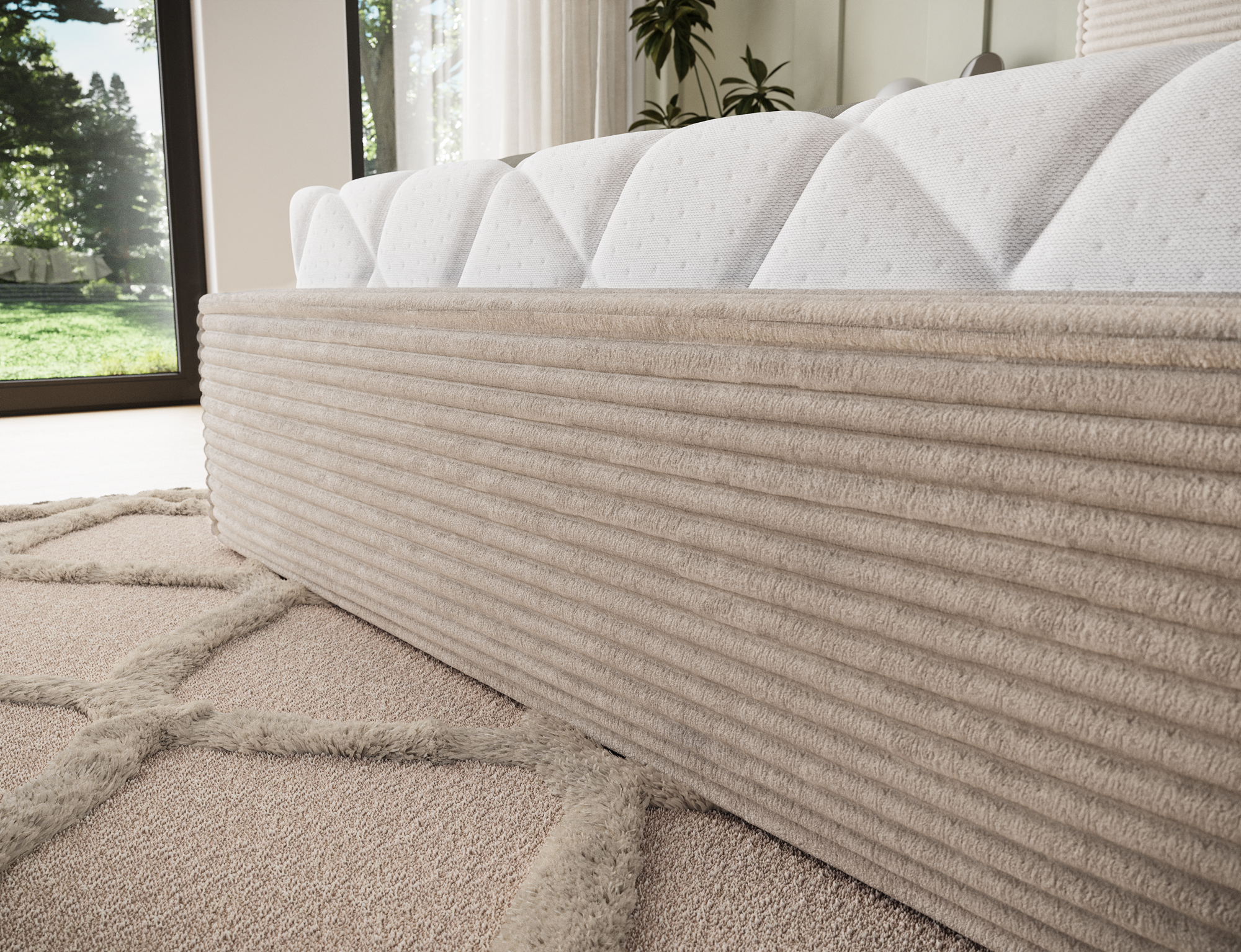 The Basel bed combines modern elegance with ultimate sleeping comfort. Its minimalist form, highlighted by subtle upholstery, fits perfectly into any bedroom – whether classic or contemporary. The soft, tall headboard provides excellent support for reading or relaxing, while the precise finishing details emphasize the bed’s luxurious character.