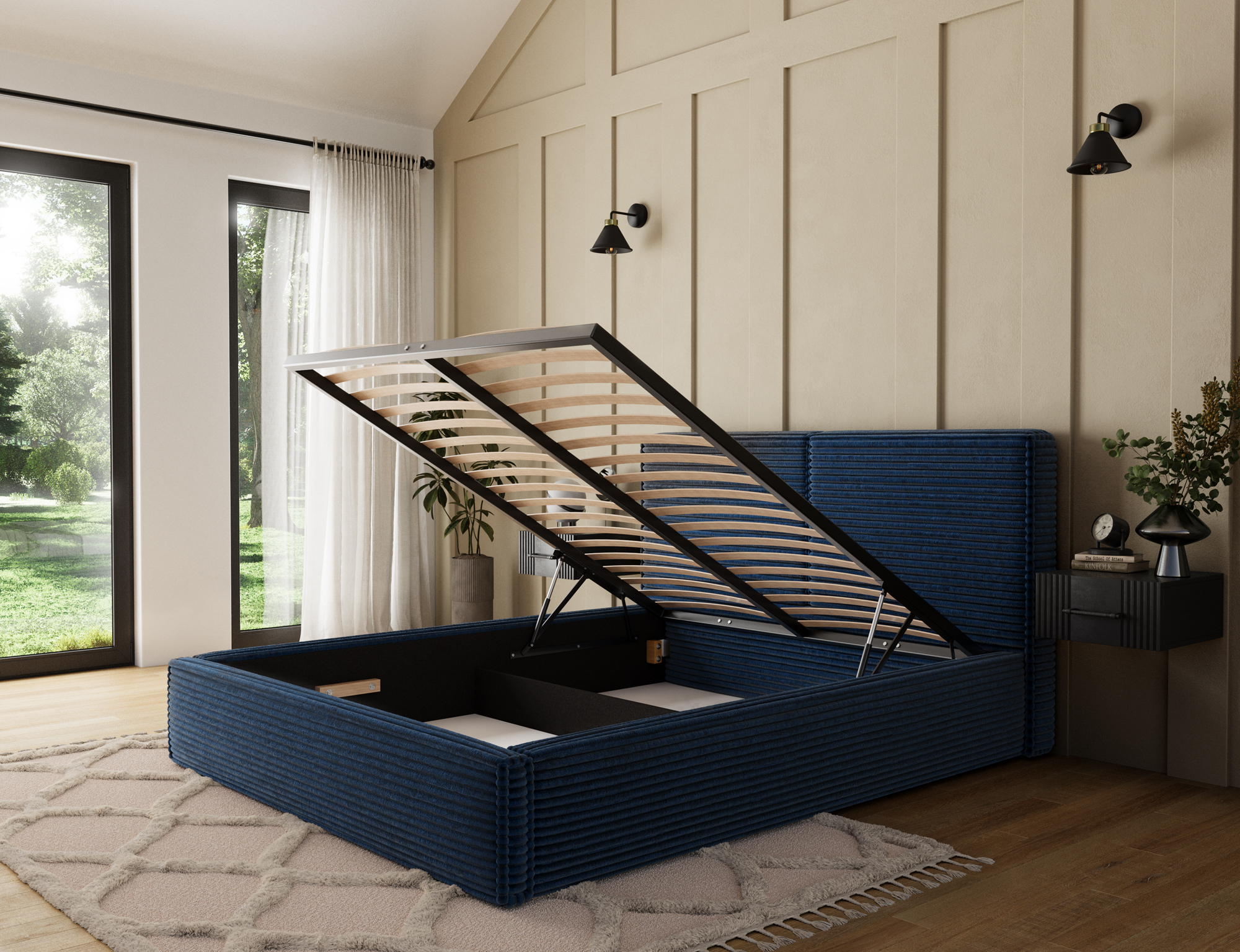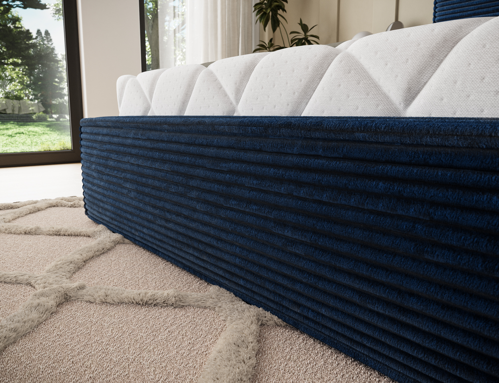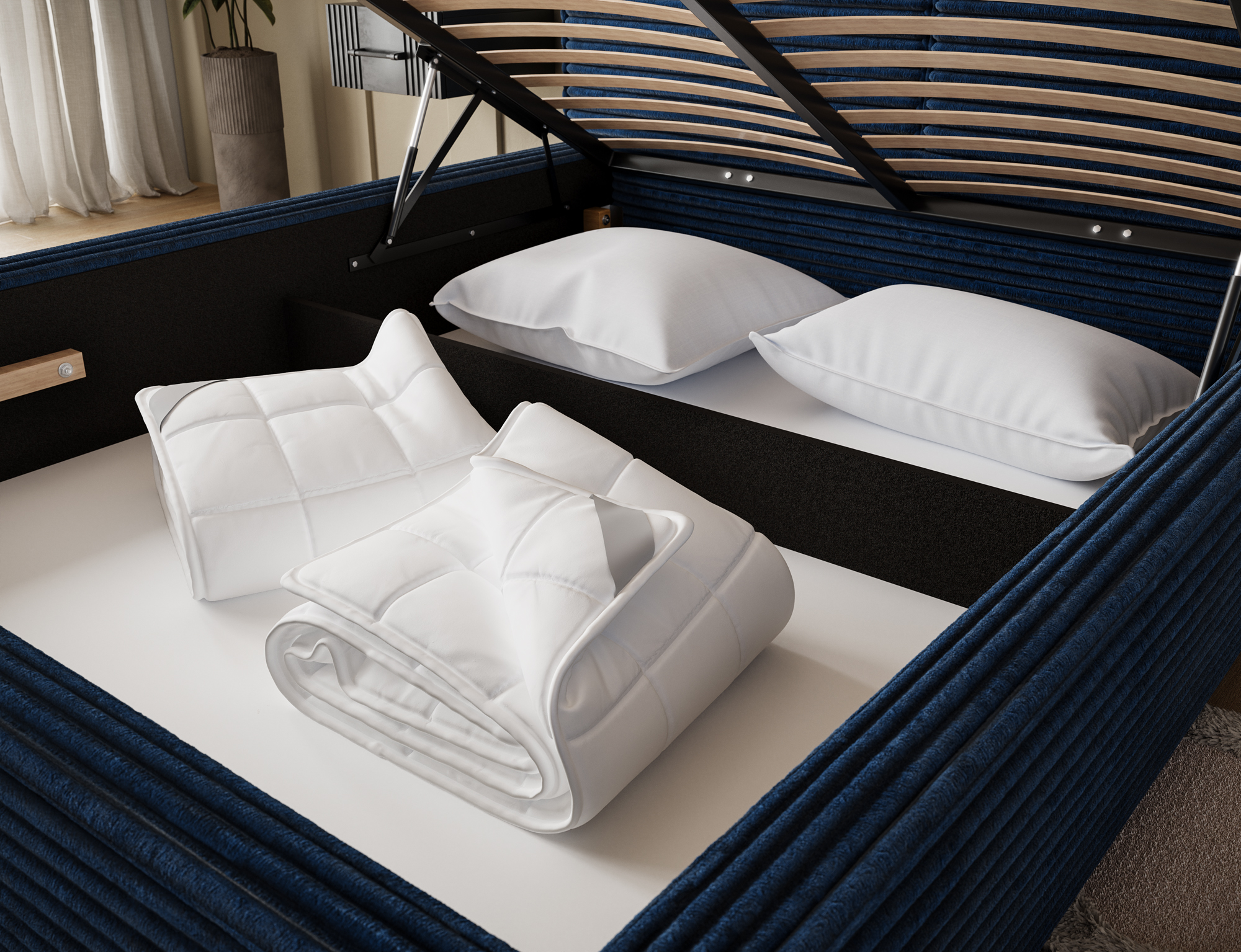 The Basel model is available in three sleeping area sizes: 140x200 cm, 160x200 cm, and 180x200 cm, allowing you to perfectly match the bed to your bedroom space. You can also choose between two types of frames: a metal frame with a gas lift or a wooden frame with a spring lift – both ensure stability, durability, and easy access to the bedding storage compartment. With Basel, you get not only style but also everyday practicality.