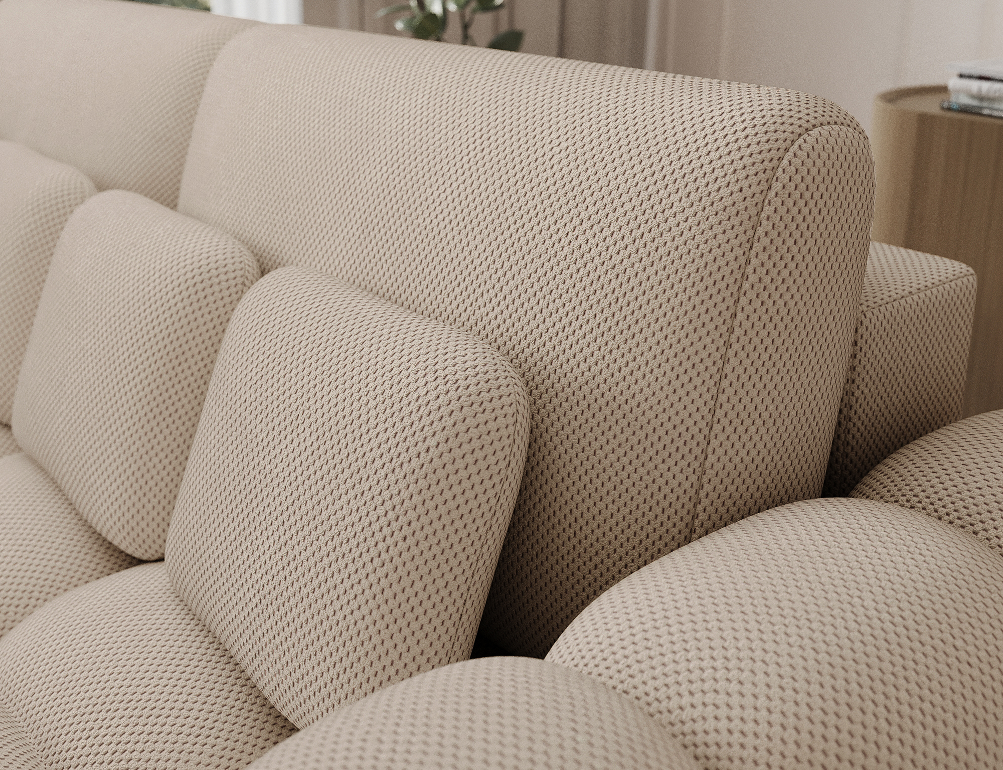 The Carel sofa impresses with its soft, rounded shape and subtle, modern aesthetics. It fits perfectly into minimalist, japandi, or contemporary interiors, adding warmth and elegance to any space. Thanks to its neutral color palette, Carel blends seamlessly with a variety of arrangements and décors.