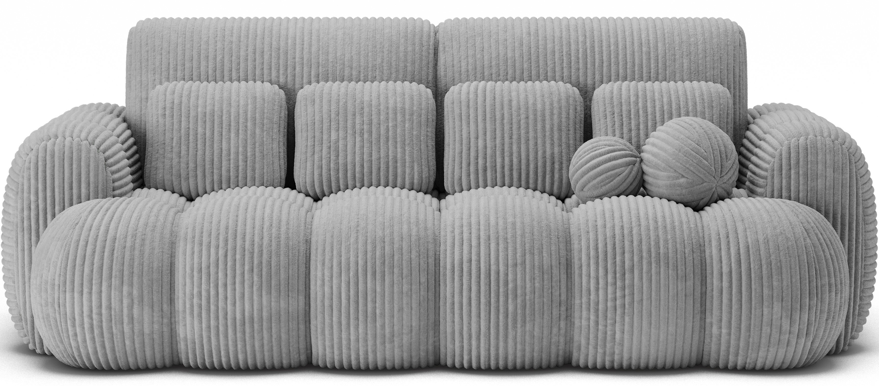 The seat is filled with type B wave springs and high-quality HR3030 and T2315 foams, ensuring both comfort and durability. The backrest features soft cushions filled with foam granules and silicone fiber, while the foldable back section includes additional springs and T2540 and T2315 foams. The set includes four small cushions and two decorative ball-shaped pillows.