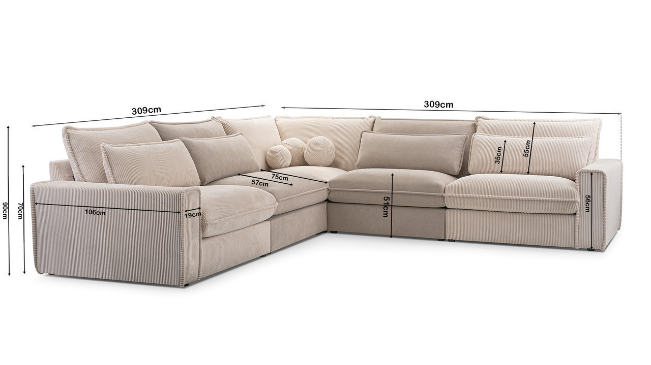 • A large seating area for the whole family – the corner sofa with a length of 309 cm and a depth of 309 cm is perfect for meetings and lazy evenings