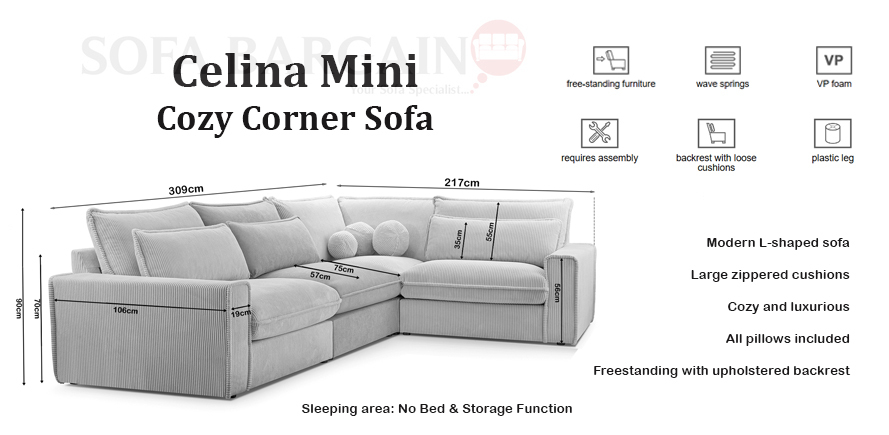 Discover a new level of comfort and functionality in your living room! The Celina Mini Cozy Corner Sofa combines well-thought-out design, durability, and ample relaxation space. Its modern lines and carefully crafted details ensure years of comfort.