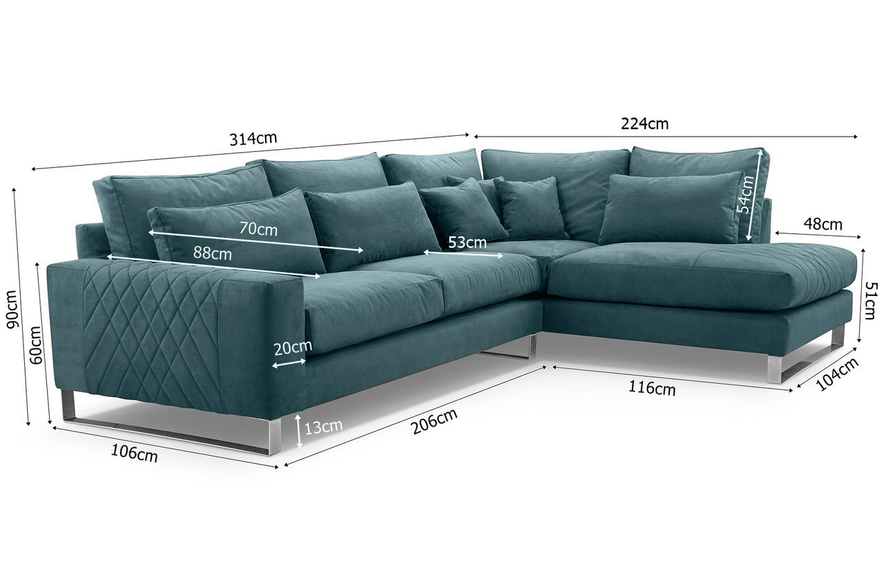 • A large seating area for the whole family – the corner sofa with a length of 314 cm and a depth of 224 cm is perfect for meetings and lazy evenings