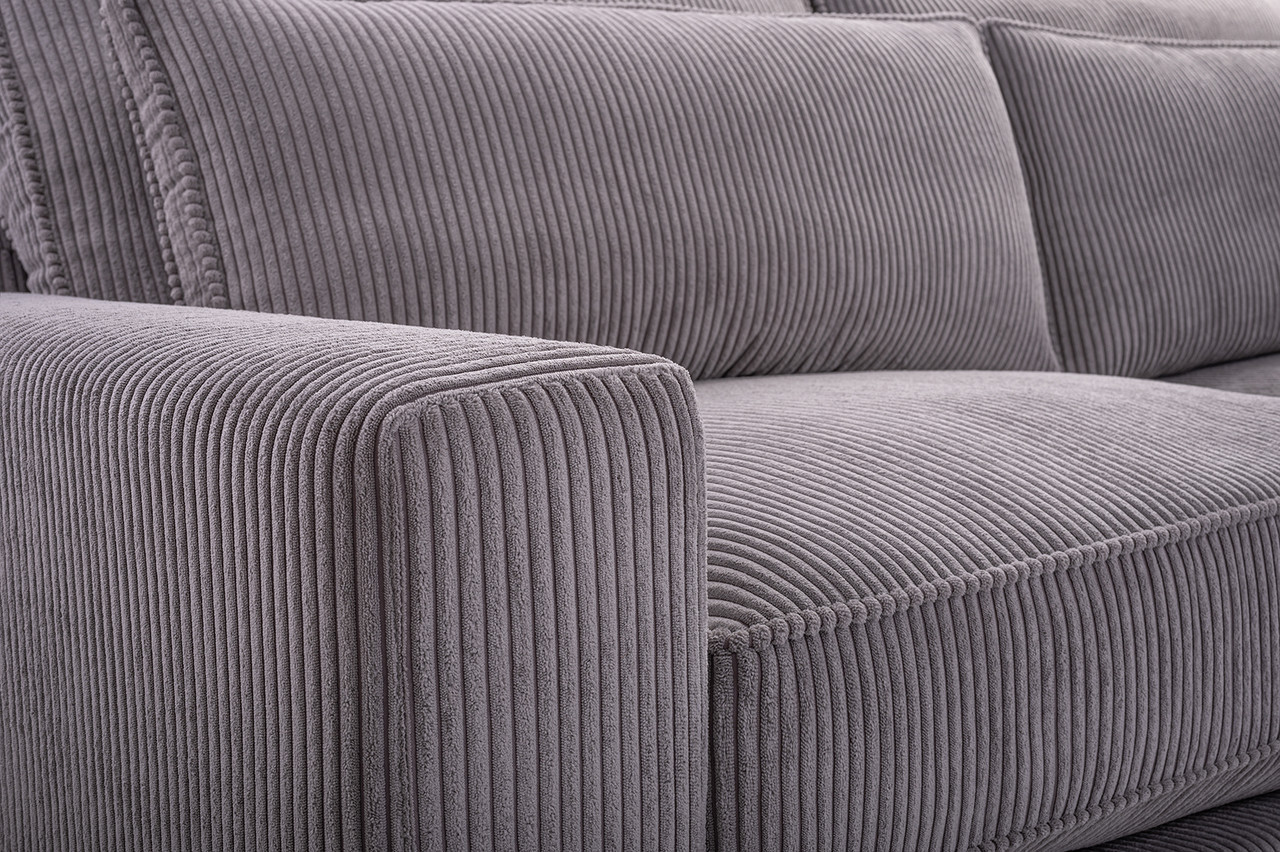 Crafted with precision, the corner sofa boasts a sturdy wooden frame, complemented by wave springs that contribute to its durability and resilience. The powder coated legs add a touch of sophistication to the overall design, combining aesthetics with structural integrity. The zippered backrest cushions not only enhance the ease of maintenance but also add a practical element to the sofa’s design.