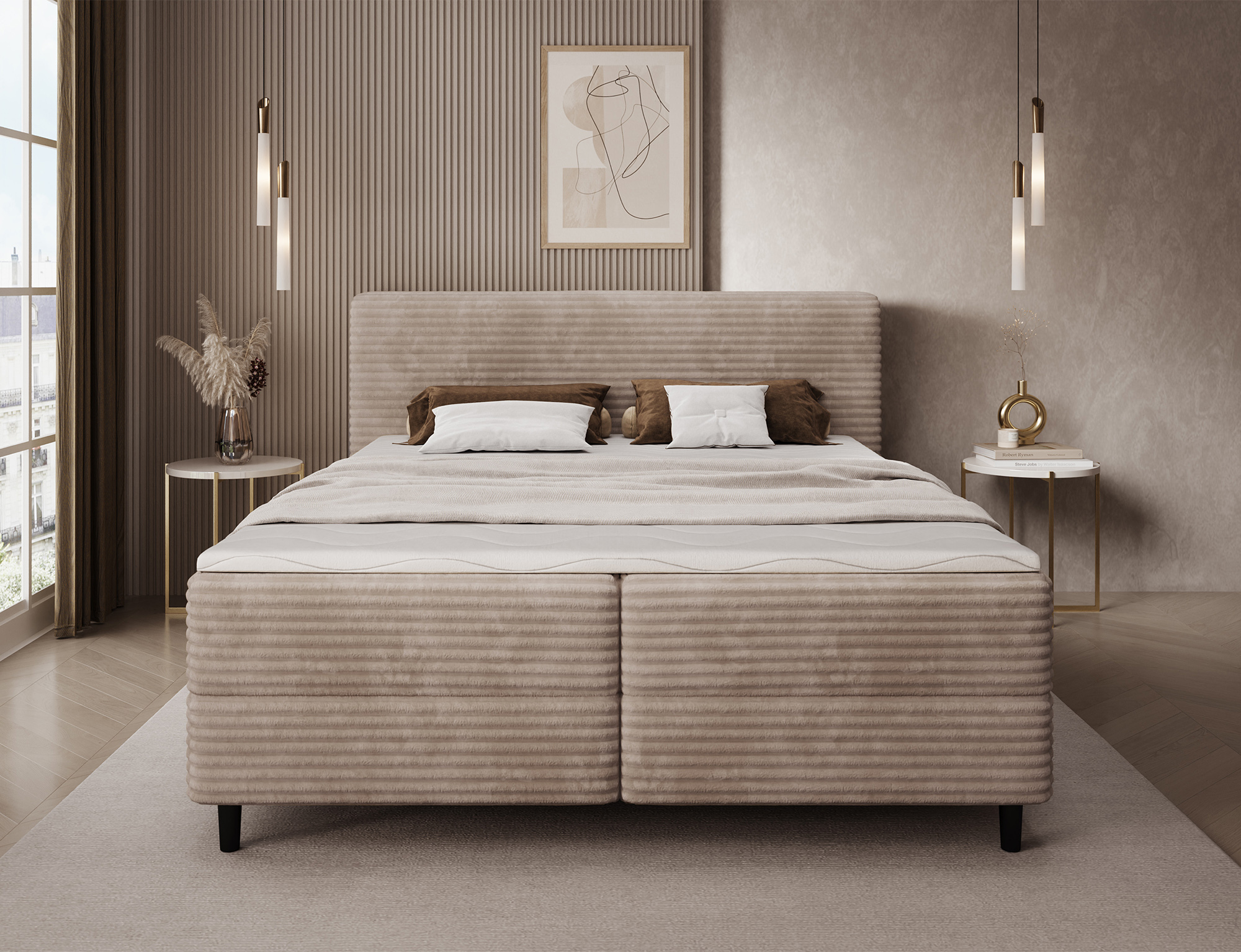 The Elegant Spring Box Bed with Storage is a perfect blend of elegance, modern style, and sleeping comfort. Its wide, softly upholstered headboard combined with a subtly ribbed fabric featuring a horizontal texture gives the bed a distinctive character and creates a cozy atmosphere in the bedroom. The minimalist form makes Elegant a great fit for both contemporary and classic interiors, enhancing their sophisticated look.