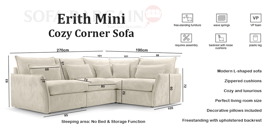 Discover a new level of comfort and functionality in your living room! The Erith Mini Cozy Corner Sofa combines well-thought-out design, durability, and ample relaxation space. Its modern lines and carefully crafted details ensure years of comfort.