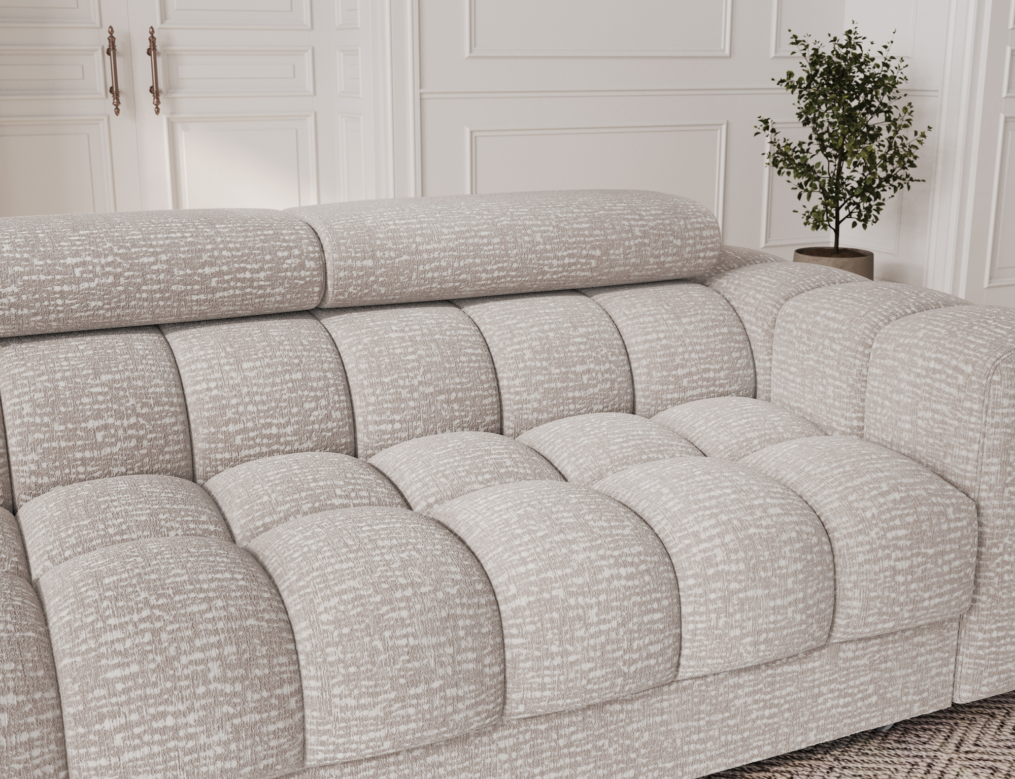 The Ethan 4 Seater Sofa Bed is a perfect choice for those who value unique design and comfort in one. Its solid form, stylish quilted seat, and adjustable headrests make it stand out among other lounge furniture. The fully upholstered back allows you to place the sofa anywhere in the living room, even in the center of the space, where it looks equally impressive.