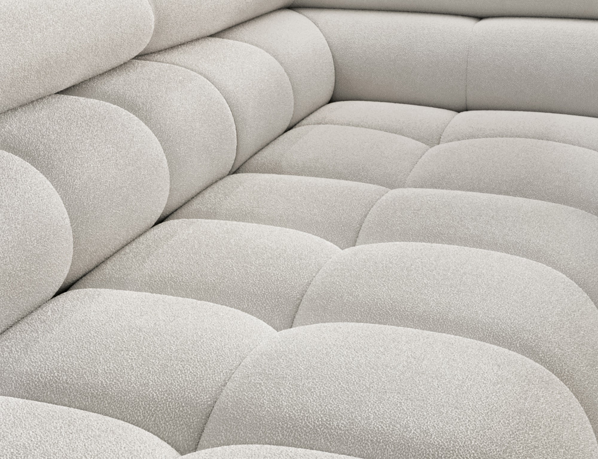 The sofa's construction is based on a solid wooden frame, while the powder-coated metal legs, 9 cm high, add a touch of lightness and modernity. The seat is filled with wave springs Type B and T3030 + HR3030 foam, ensuring seating comfort. The backrest, made of T2130 polyurethane foam, provides proper back support.