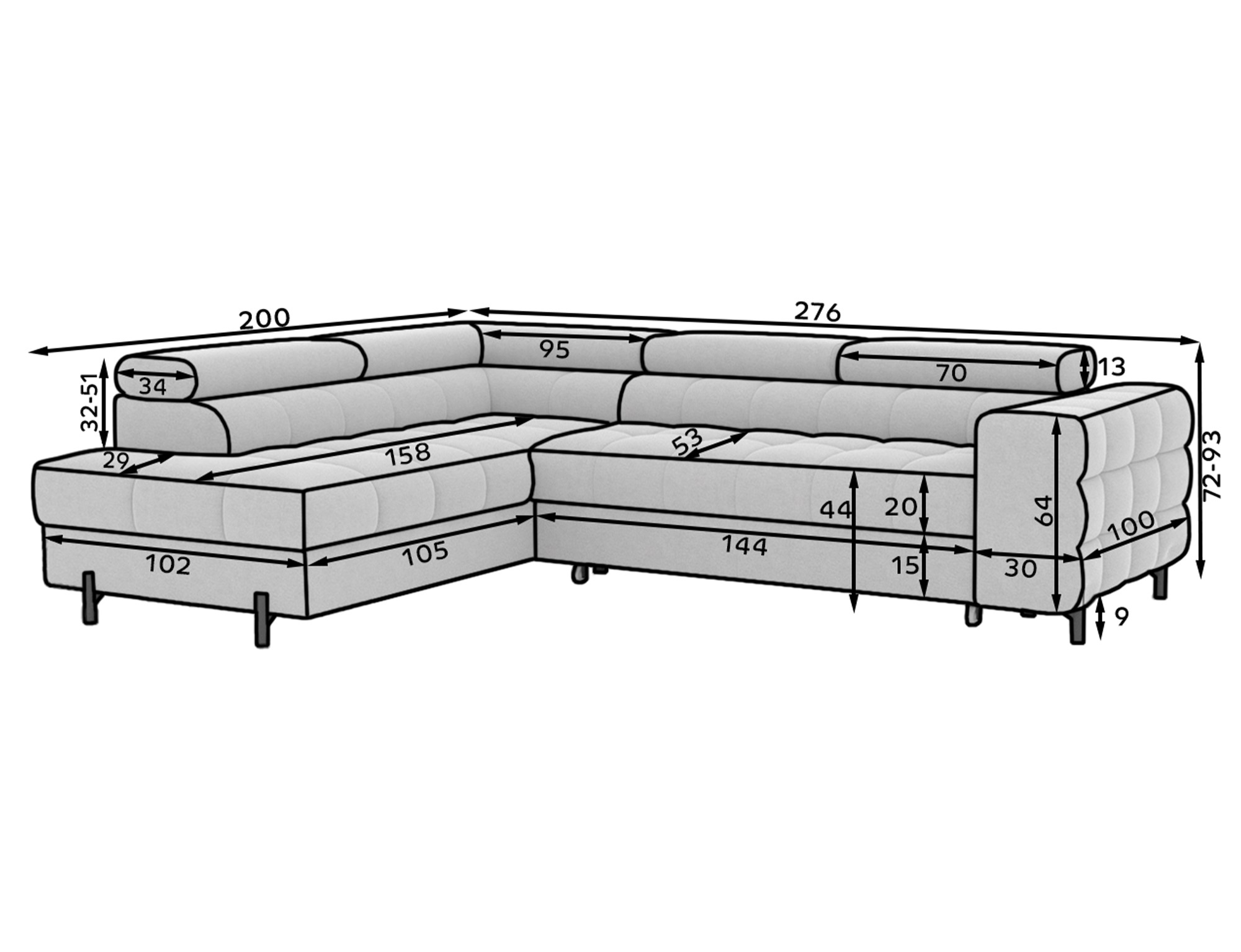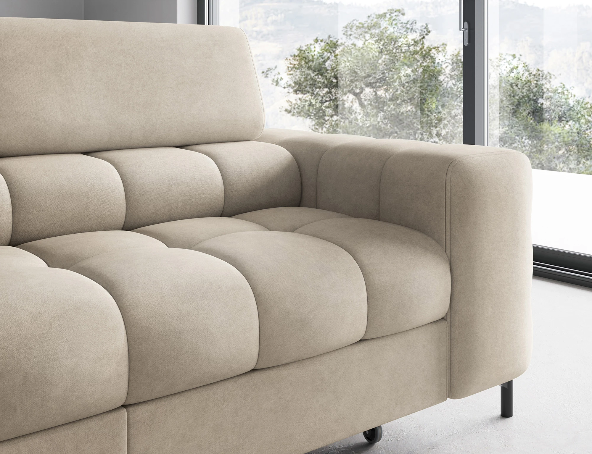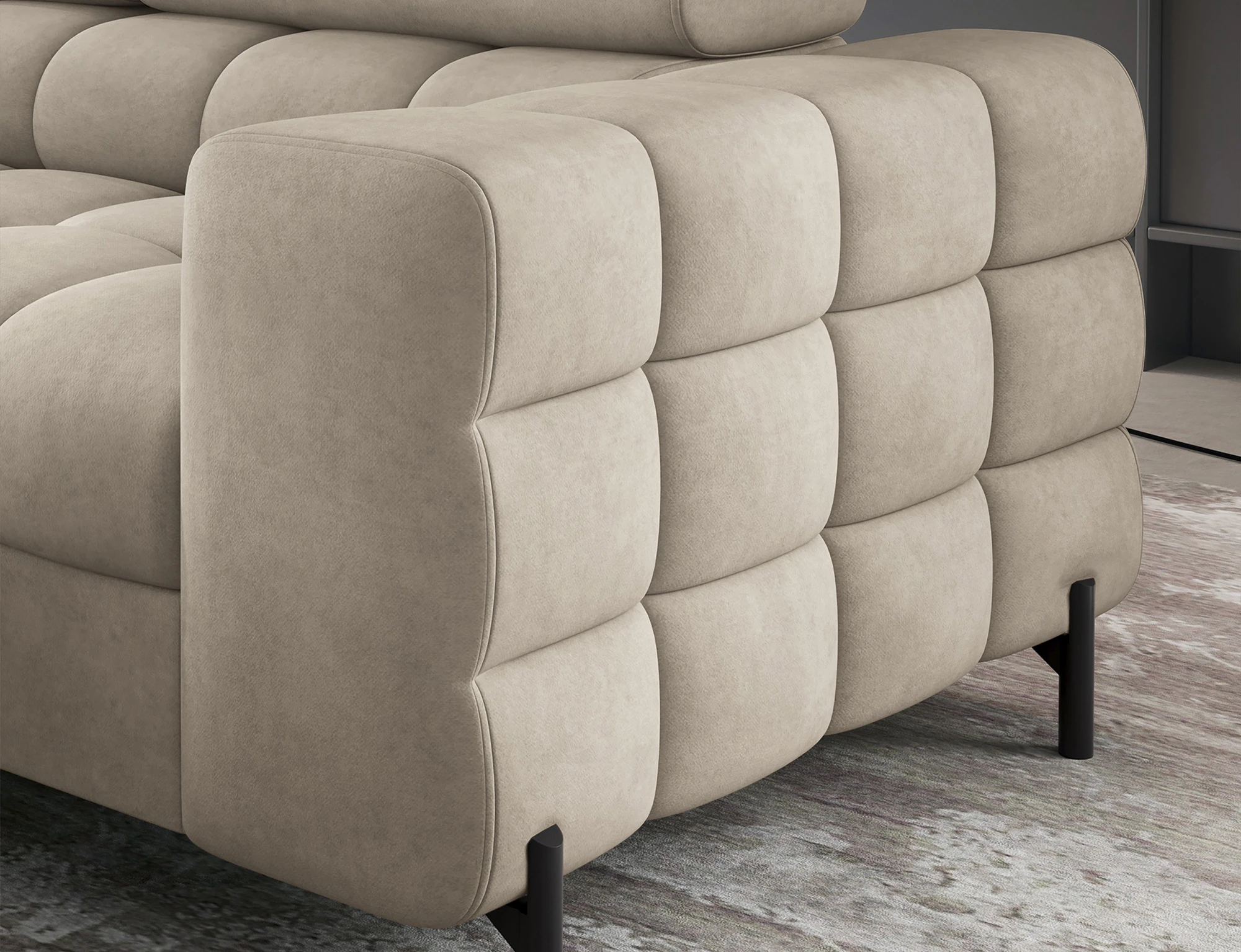 The Ethan Corner Sofa Bed with Storage is a modern piece of furniture that combines functionality and aesthetics, fitting perfectly into various interior design styles, from loft to rustic. With its impressive width of 276 cm and depth of 200 cm, it offers ample space for relaxation. The adjustable headrests and upholstered back ensure comfort during daily use and relaxation.