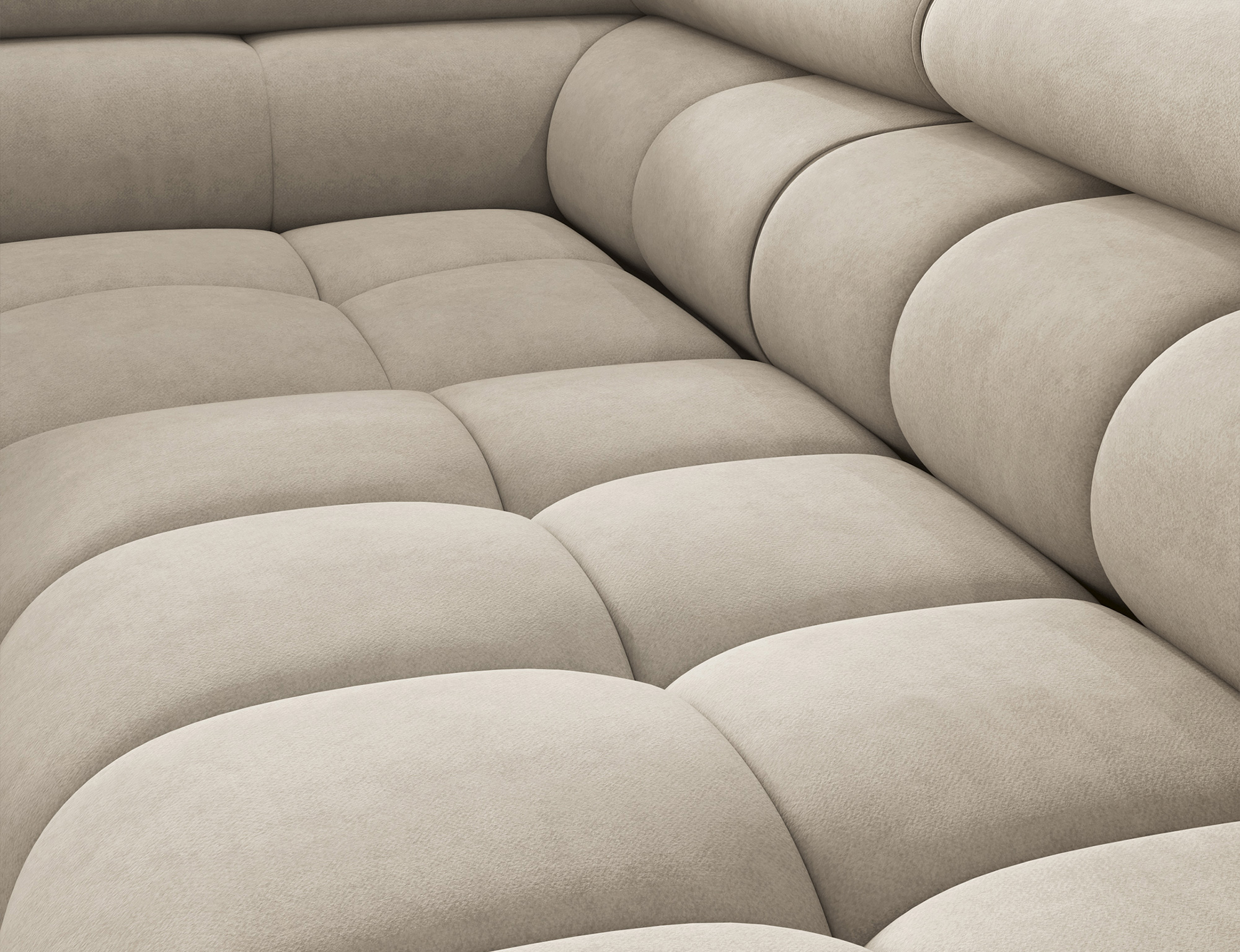 The sofa's construction is based on a solid wooden frame, while the powder-coated metal legs, 9 cm high, add a touch of lightness and modernity. The seat is filled with wave springs Type B and T3030 + HR3030 foam, ensuring seating comfort. The backrest, made of T2130 polyurethane foam, provides proper back support.
