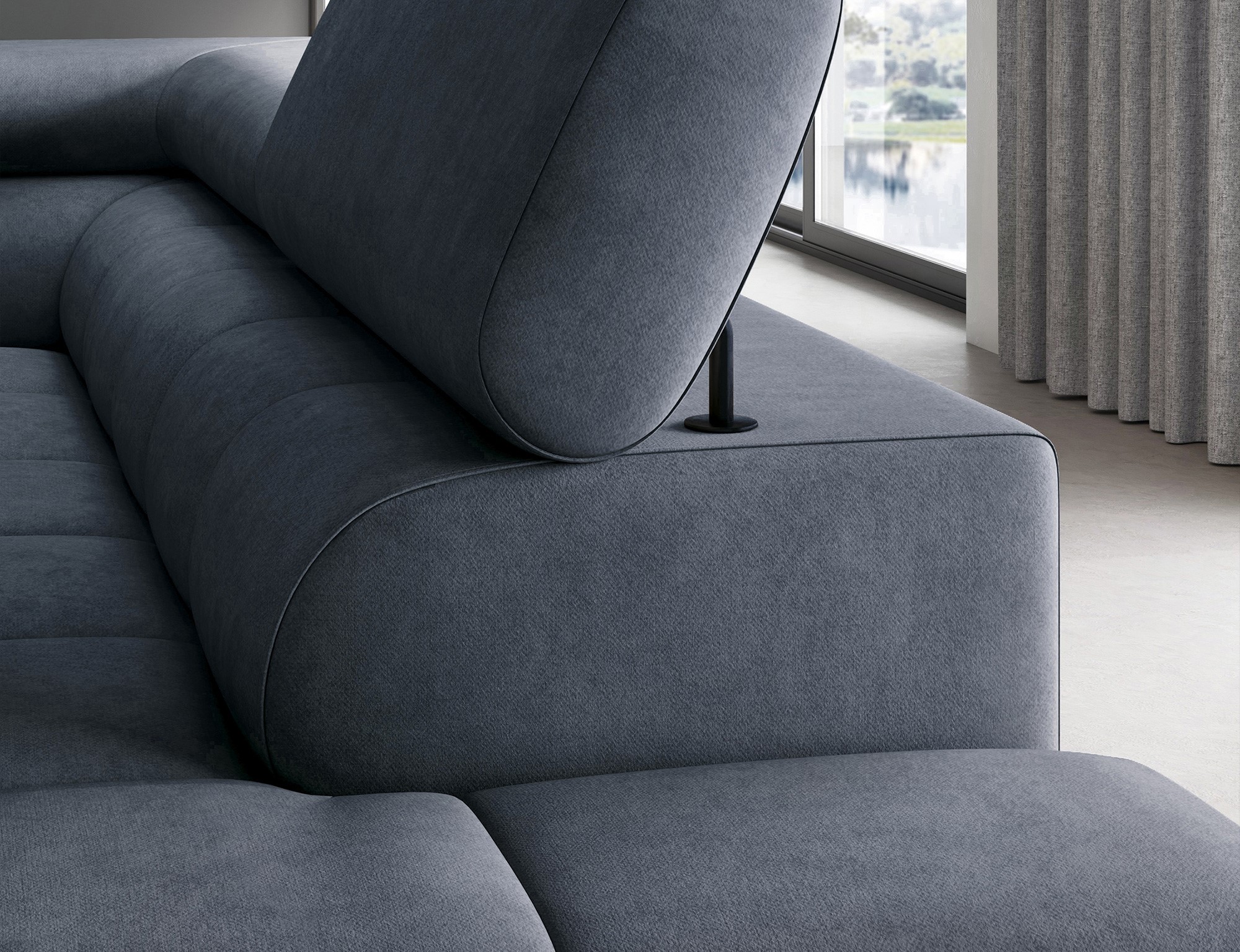 The Ethan Corner Sofa Bed with Storage is a modern piece of furniture that combines functionality and aesthetics, fitting perfectly into various interior design styles, from loft to rustic. With its impressive width of 276 cm and depth of 200 cm, it offers ample space for relaxation. The adjustable headrests and upholstered back ensure comfort during daily use and relaxation.