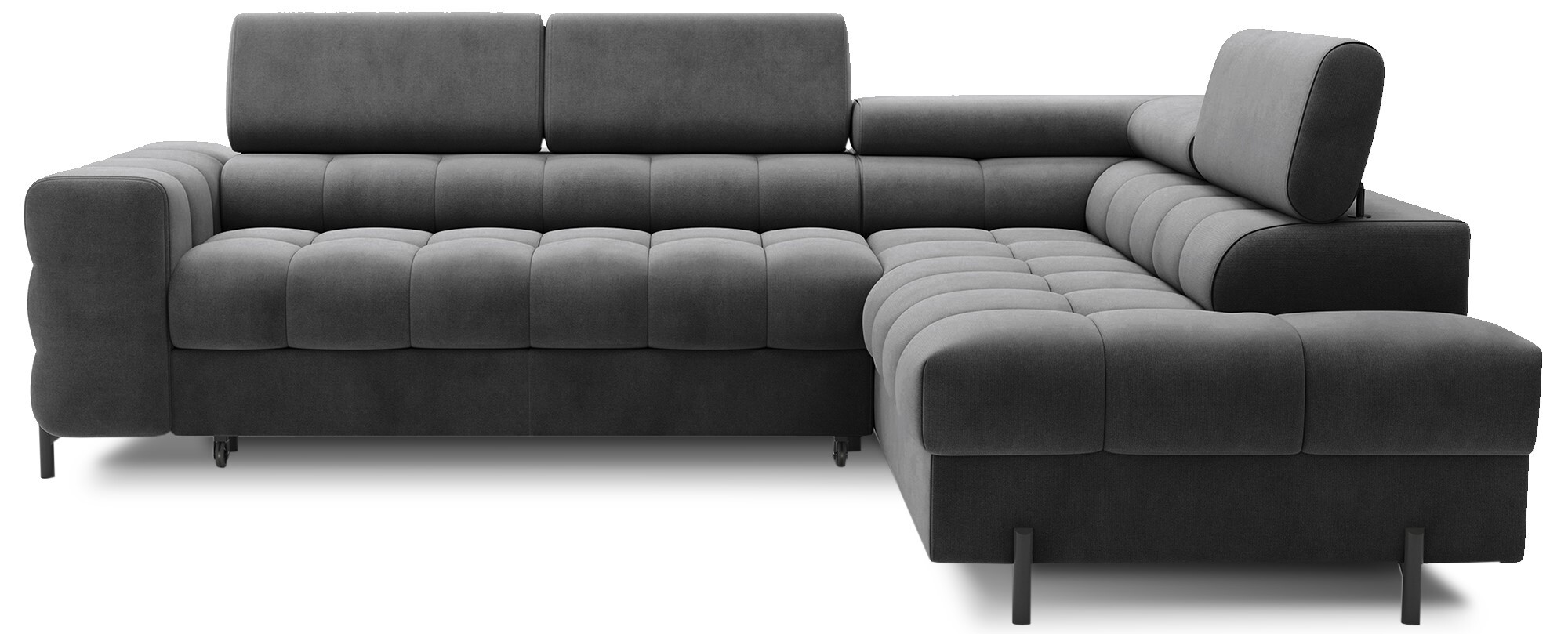 The Ethan Corner Sofa Bed with Storage is a modern piece of furniture that combines functionality and aesthetics, fitting perfectly into various interior design styles, from loft to rustic. With its impressive width of 276 cm and depth of 200 cm, it offers ample space for relaxation. The adjustable headrests and upholstered back ensure comfort during daily use and relaxation.