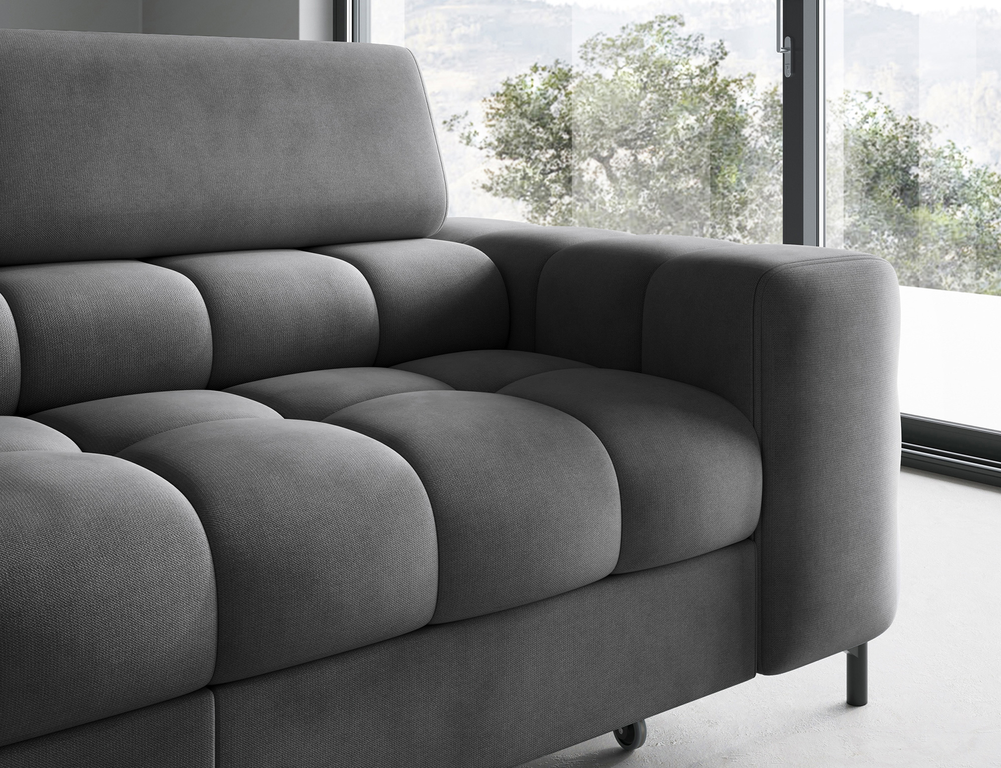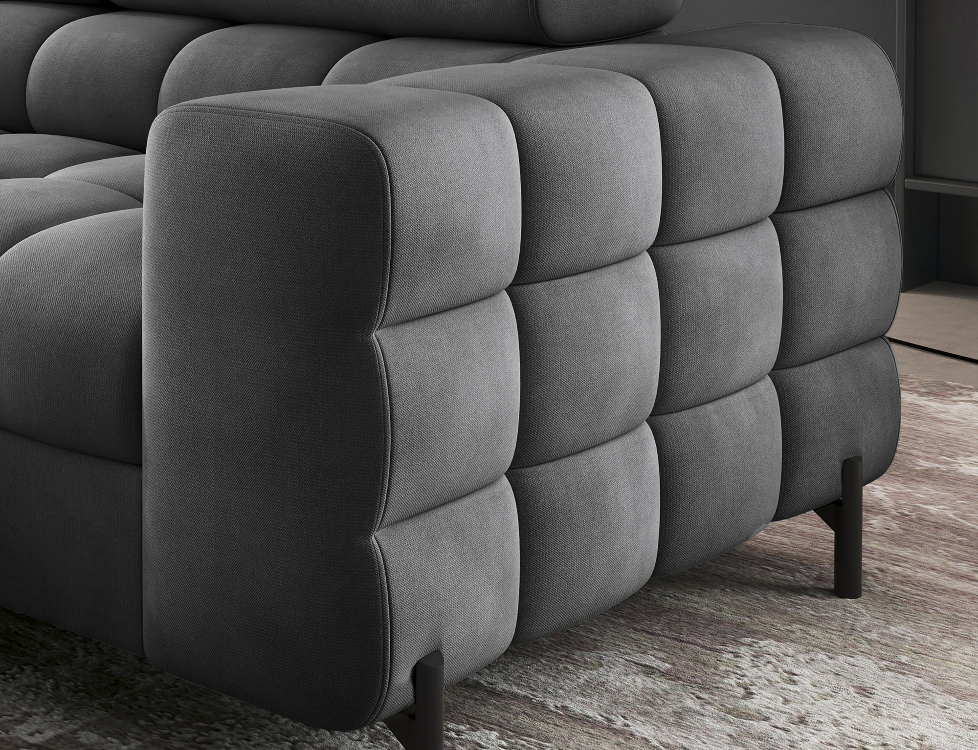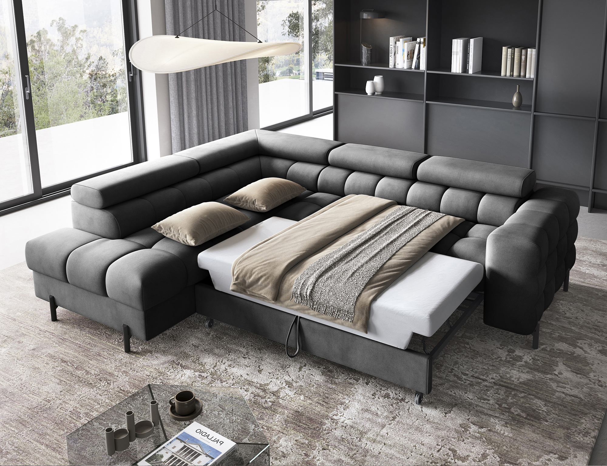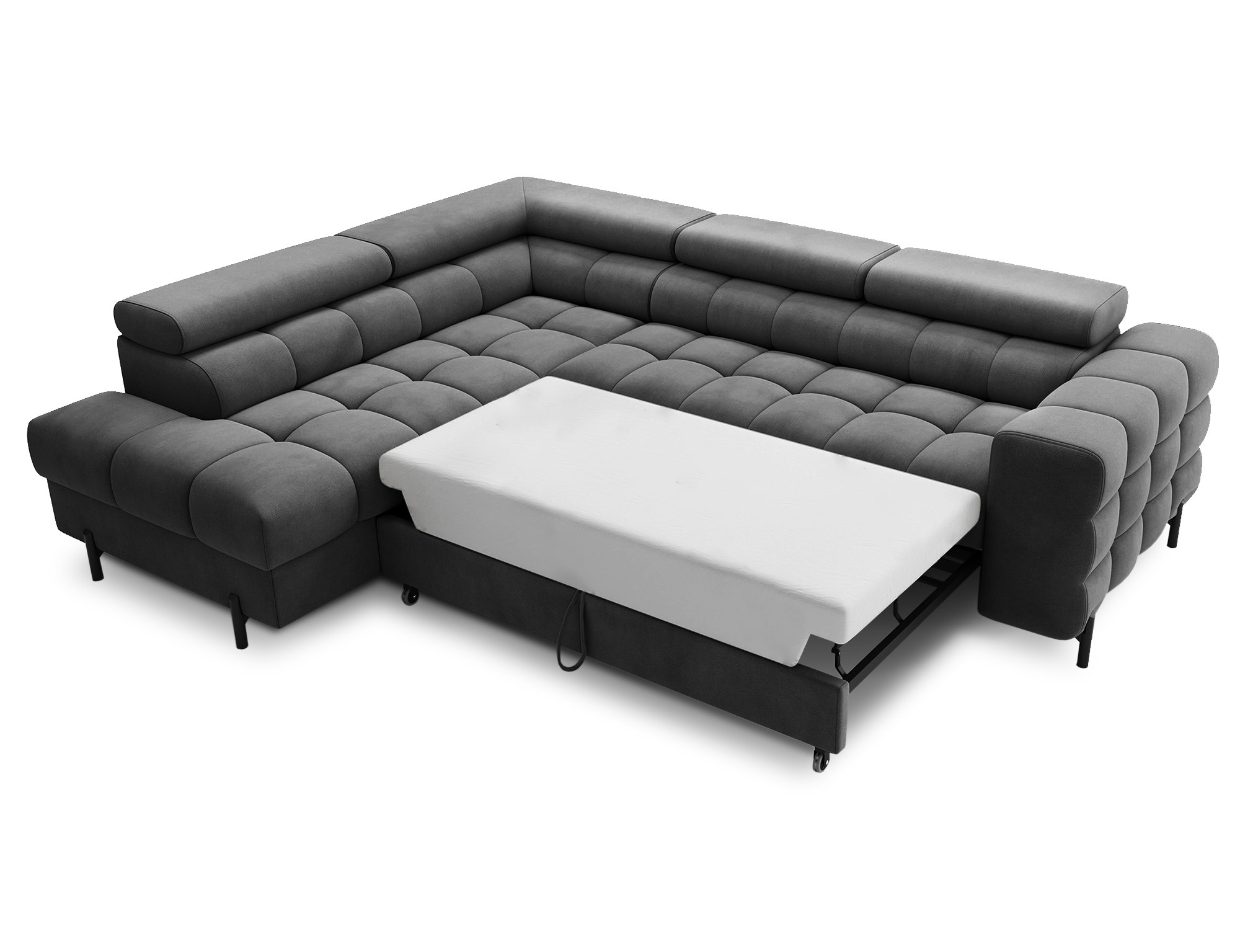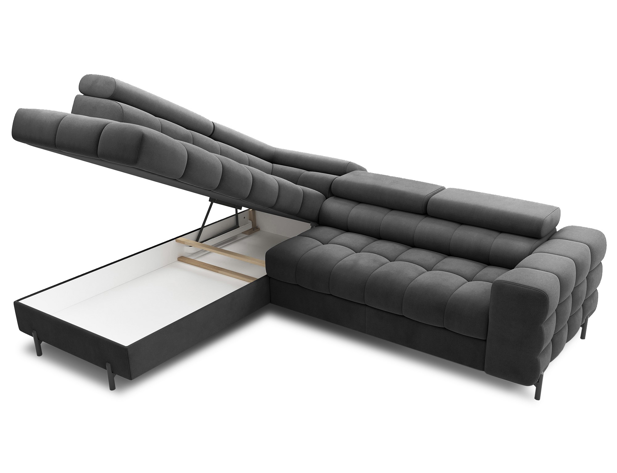 The Ethan Corner Sofa Bed with Storage is a modern piece of furniture that combines functionality and aesthetics, fitting perfectly into various interior design styles, from loft to rustic. With its impressive width of 276 cm and depth of 200 cm, it offers ample space for relaxation. The adjustable headrests and upholstered back ensure comfort during daily use and relaxation.
