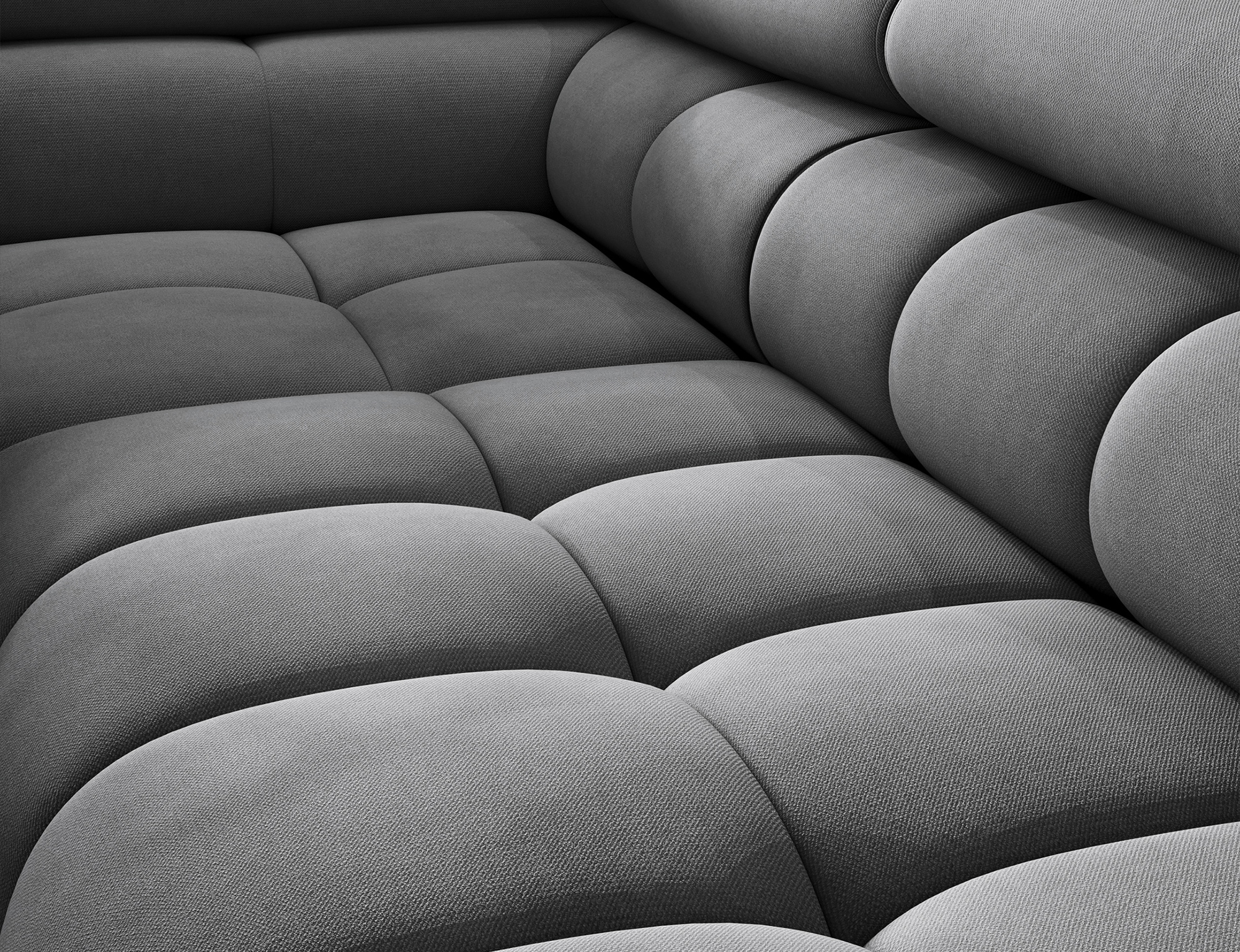The sofa's construction is based on a solid wooden frame, while the powder-coated metal legs, 9 cm high, add a touch of lightness and modernity. The seat is filled with wave springs Type B and T3030 + HR3030 foam, ensuring seating comfort. The backrest, made of T2130 polyurethane foam, provides proper back support.