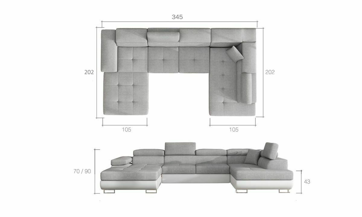 The elegance of this U shaped sofa is just one of its many advantages. The Roddallo U Shaped Sofa Bed with Storage is built on a proven, sturdy construction for great stability and load resistance, ensuring a long service life. The comfort as you relax on the sofa is due to the direct contribution of the stuffing materials used for the seats. The combination of flexible, heavy-duty continuous springs with soft, resilient T30 foam provides this 345x202x90 cm sofa with great levels of comfort. Yet another advantage for anyone who loves functional furniture is being able to convert it to a bed measuring 125x266, complete with spacious bedlinen storage inside the ottoman seat. The sofa is converted into a bed by a pull-out drawer system, which is very easy to use and ensures you have a great place to sleep through the night.