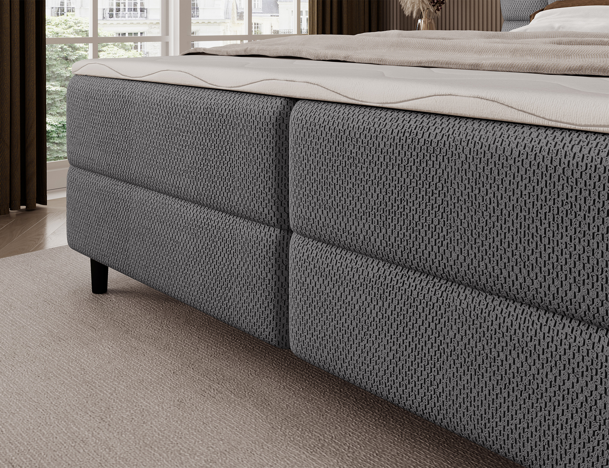 The Fancy spring box bed is complemented by black wooden legs with a height of 10 cm, which add lightness to the design and make cleaning underneath the bed easier. Carefully selected materials, solid craftsmanship, and a modern shape make this model an excellent choice for anyone looking for comfort, functionality, and elegance in one. Fancy is a bed designed for healthy, restful sleep while offering a timeless look that will fit seamlessly into any modern interior.