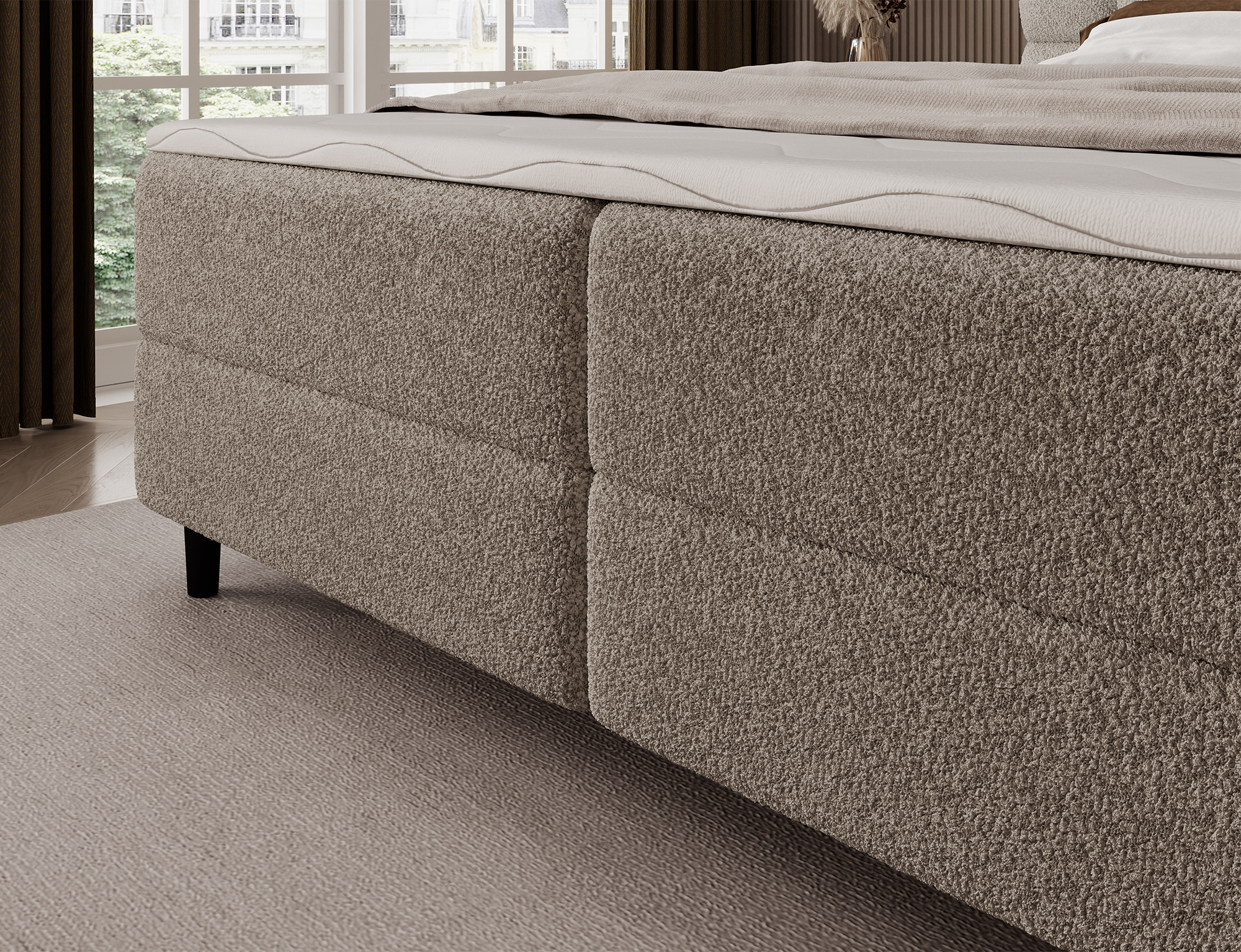 The Fancy spring box bed is complemented by black wooden legs with a height of 10 cm, which add lightness to the design and make cleaning underneath the bed easier. Carefully selected materials, solid craftsmanship, and a modern shape make this model an excellent choice for anyone looking for comfort, functionality, and elegance in one. Fancy is a bed designed for healthy, restful sleep while offering a timeless look that will fit seamlessly into any modern interior.