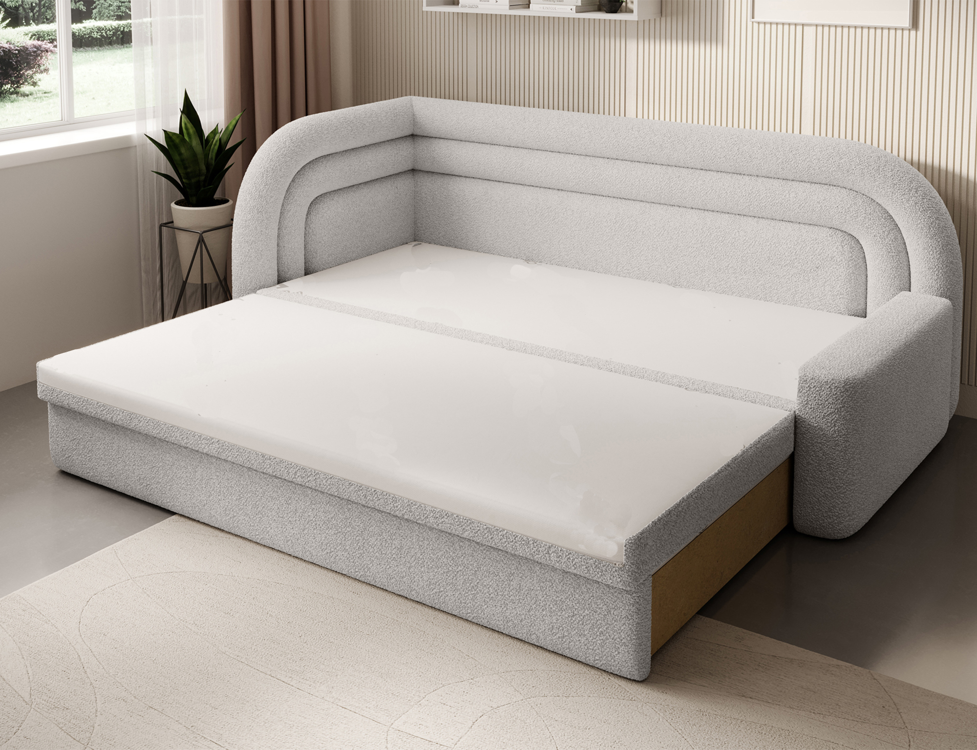 The Filya sofa also features practical solutions that make your daily life easier. It includes a spacious storage compartment for bedding, allowing you to quickly and easily organize your textiles. The folding mechanism is user-friendly, enabling a fast transformation of the sofa into a bed for guests or everyday use.