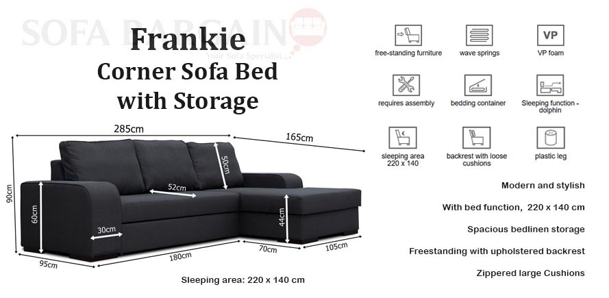 Stretch out or entertain in style with the Frankie Corner Sofa Bed with Storage: