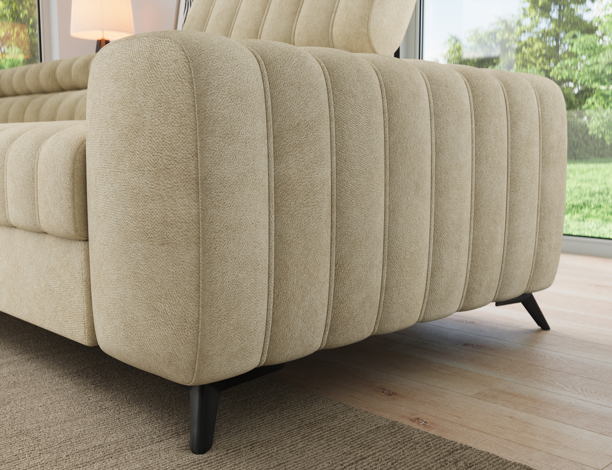 The Kearsley model stands out with its decorative stitching and soft, pleasant-to-touch upholstery, giving it a refined and luxurious feel. It is an excellent choice for modern, loft-style, and minimalist interiors where both aesthetics and comfort matter. Harmonious proportions and carefully crafted details make this corner sofa the focal point of any living room arrangement, enhancing the overall style and elegance of the space.