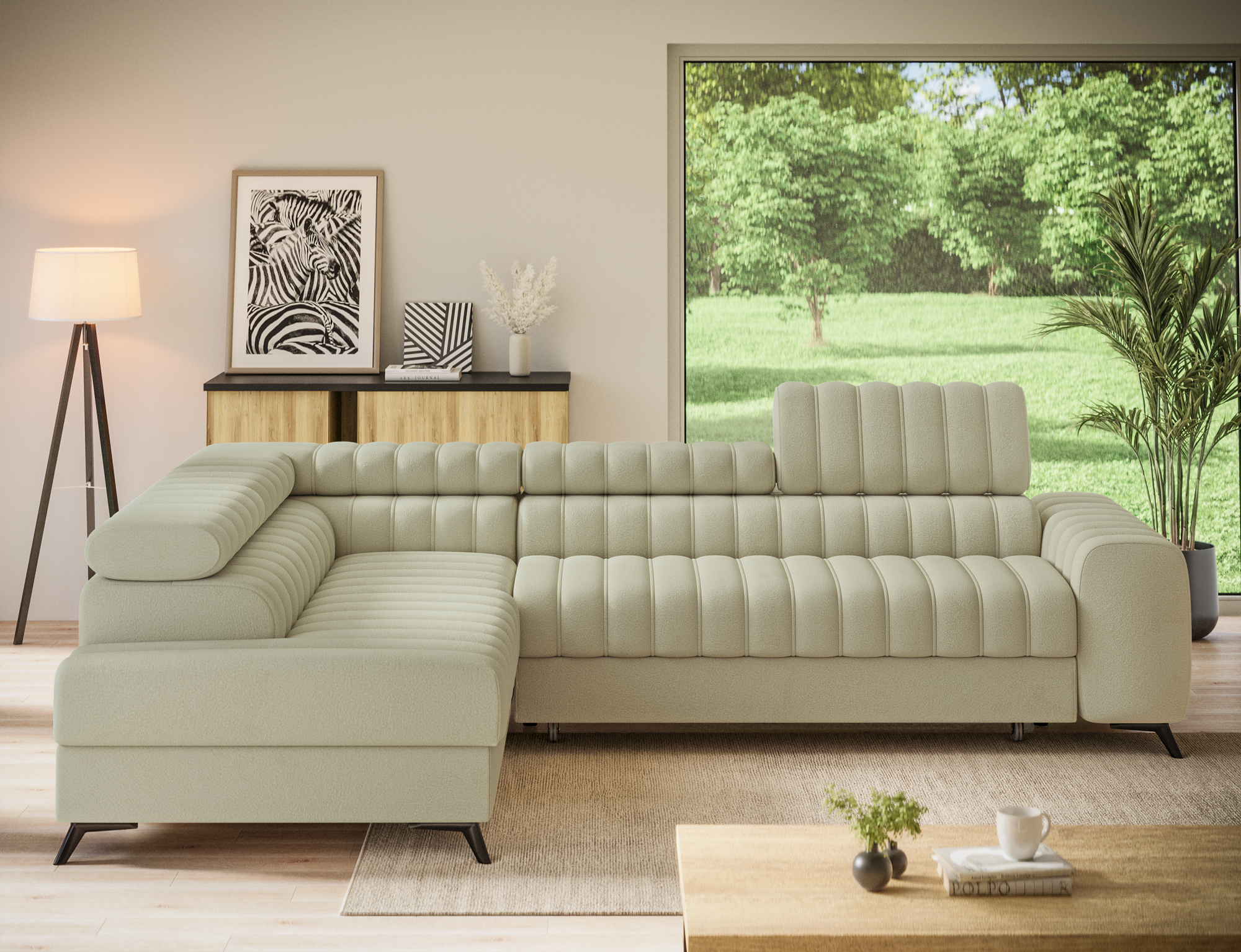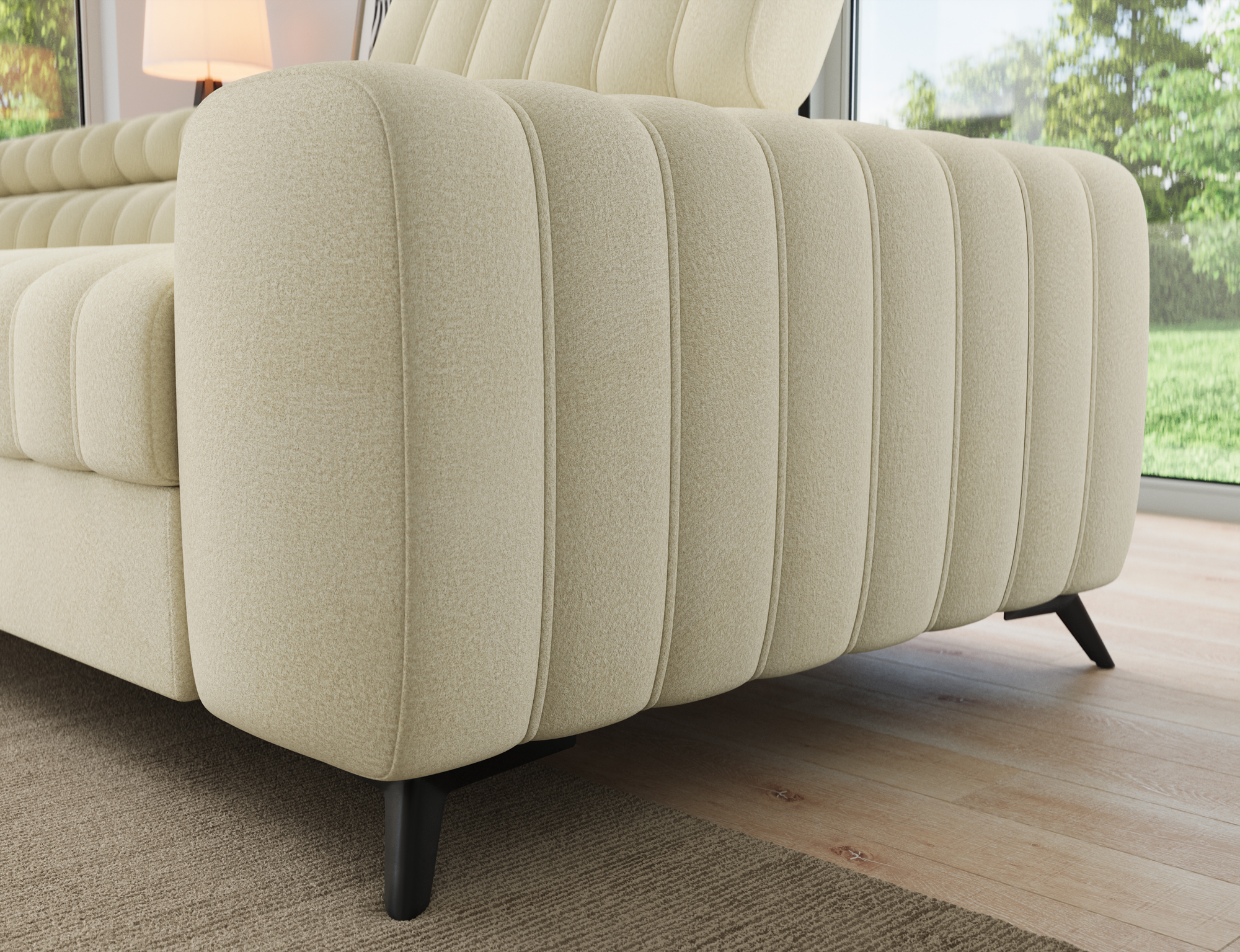The Kearsley model stands out with its decorative stitching and soft, pleasant-to-touch upholstery, giving it a refined and luxurious feel. It is an excellent choice for modern, loft-style, and minimalist interiors where both aesthetics and comfort matter. Harmonious proportions and carefully crafted details make this corner sofa the focal point of any living room arrangement, enhancing the overall style and elegance of the space.