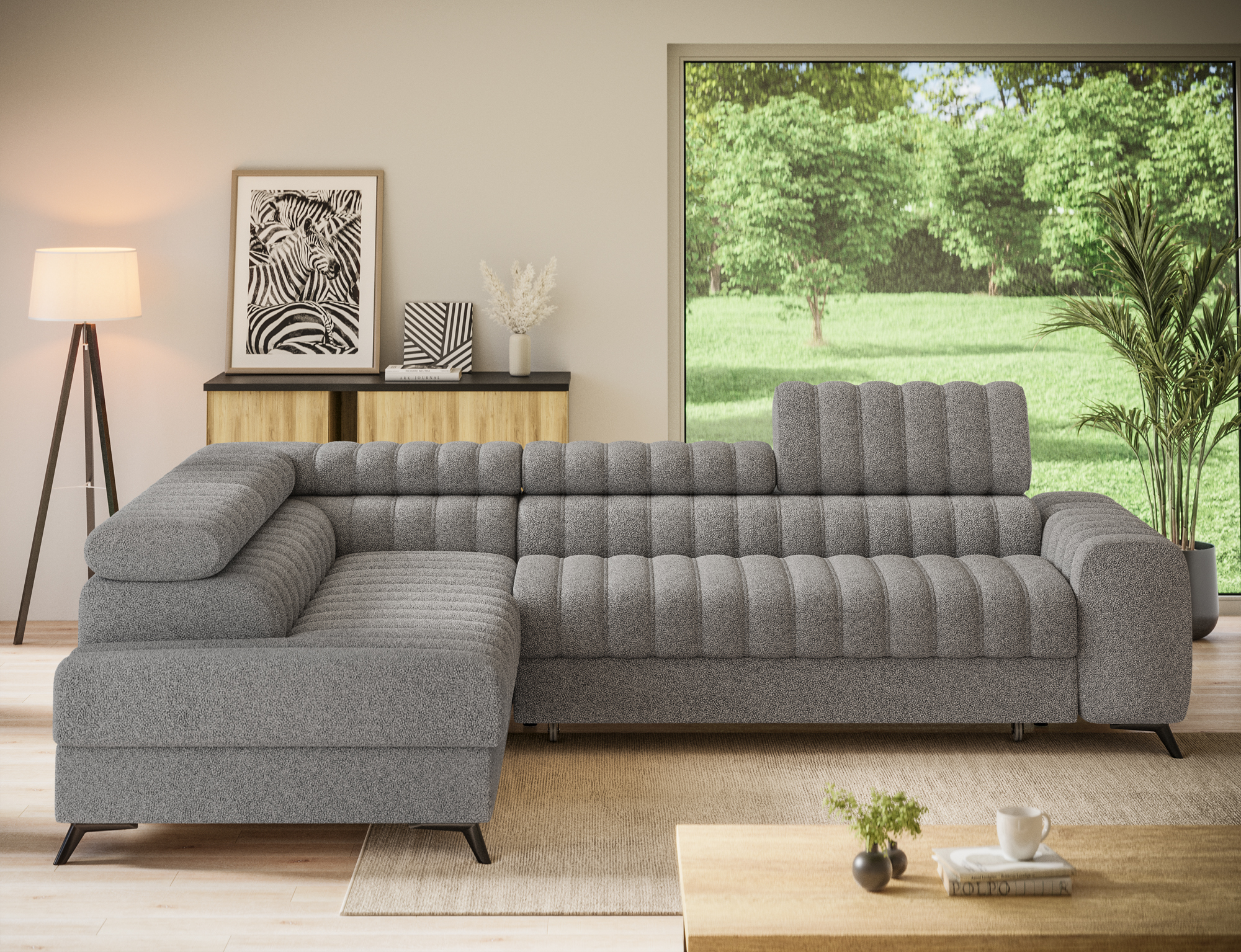 The Kearsley model stands out with its decorative stitching and soft, pleasant-to-touch upholstery, giving it a refined and luxurious feel. It is an excellent choice for modern, loft-style, and minimalist interiors where both aesthetics and comfort matter. Harmonious proportions and carefully crafted details make this corner sofa the focal point of any living room arrangement, enhancing the overall style and elegance of the space.