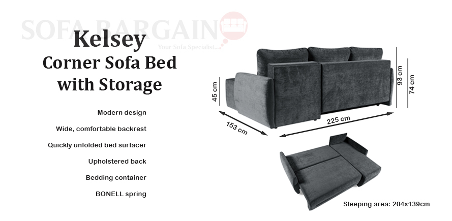 Convenience is the fundamental value of every piece of furniture, but we also pay no less attention to the appropriate appearance and proper finish of what is now to become the heart of our showroom. Properly matched design will be one of the key values supporting the final choice. But take it easy… In this category, Kelsey Corner Sofa Bed with Storage will be the undisputed leader. Our corner sofa is so cozy that it is difficult to break away from it. The delicate, yet universal appearance fits into many different interiors, and its unique functionality makes it an ideal piece of furniture.