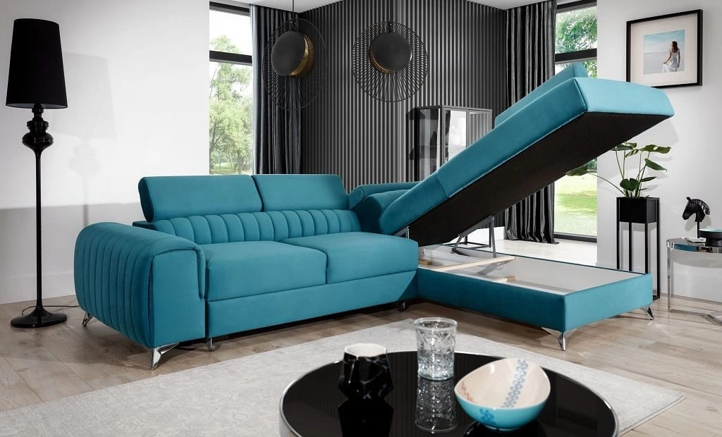 The living room is an ideal place for everyday relaxation and a meeting point with family and friends. Everyone knows that this room has always had its hero, i.e. a comfortable corner sofa or sofa. This is the first thing you will notice when you enter the living room. Moreover, it is also a favorite place for family relaxation after returning home, watching TV, reading books, taking a nap or even having a snack. That's why the hero of the living room should be unique. It so happens that we offer something that deserves to be called a living room hero - the Leicester corner sofa bed with storage.