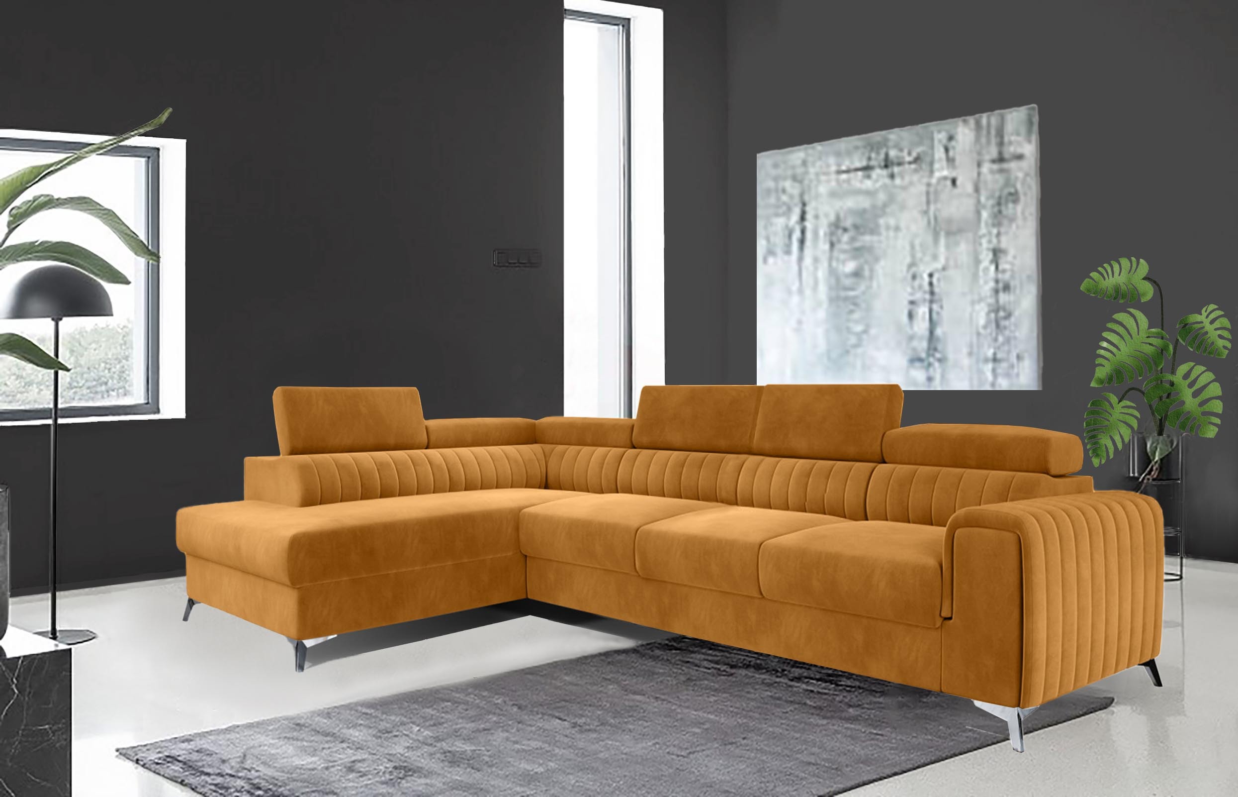 Enjoy cozy family movie nights and organize elegant cocktail parties in the lounge, where Leicester corner sofa bed with storage is the perfect centerpiece for your arrangement. A corner sofa that combines a contemporary look with simple sophistication. Leicester corner sofa bed with storage fold-out corner sofa has a luxurious, modern look and practical functions. This piece of furniture guarantees quality and durability for your pleasure, so that you can feel at home perfectly.
