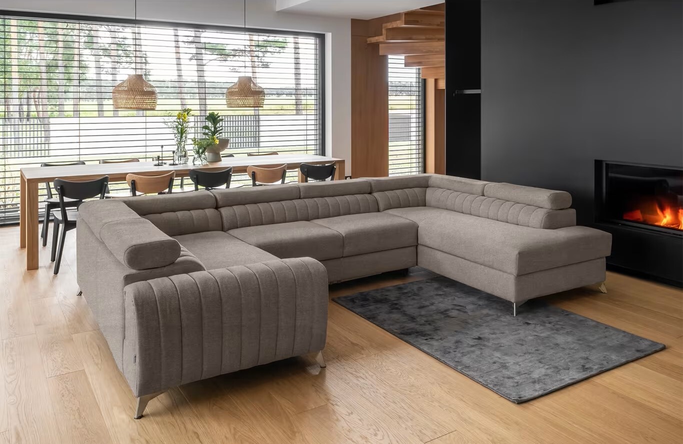 Welcome guests in your home with pride, because our corner sofa is a very expressive and impressive piece of furniture, even made for royal treatment. It is also worth paying attention to the designer legs of the furniture. Steel, chrome, high legs are not only an elegant decoration of our corner, but also provide a place for trouble-free sweeping of dust from the floor under the furniture. The aesthetic value is also emphasized by the vertical stitching on the side and the Leicester armrest. This multifunctional corner sofa bed has been created to make your home decor more attractive. Regardless of whether it is a living room, bedroom or office, the classic look of the furniture complements the interior design. The Leicester U Shaped Sofa be with Storage is a small change that will make a huge difference in your home.