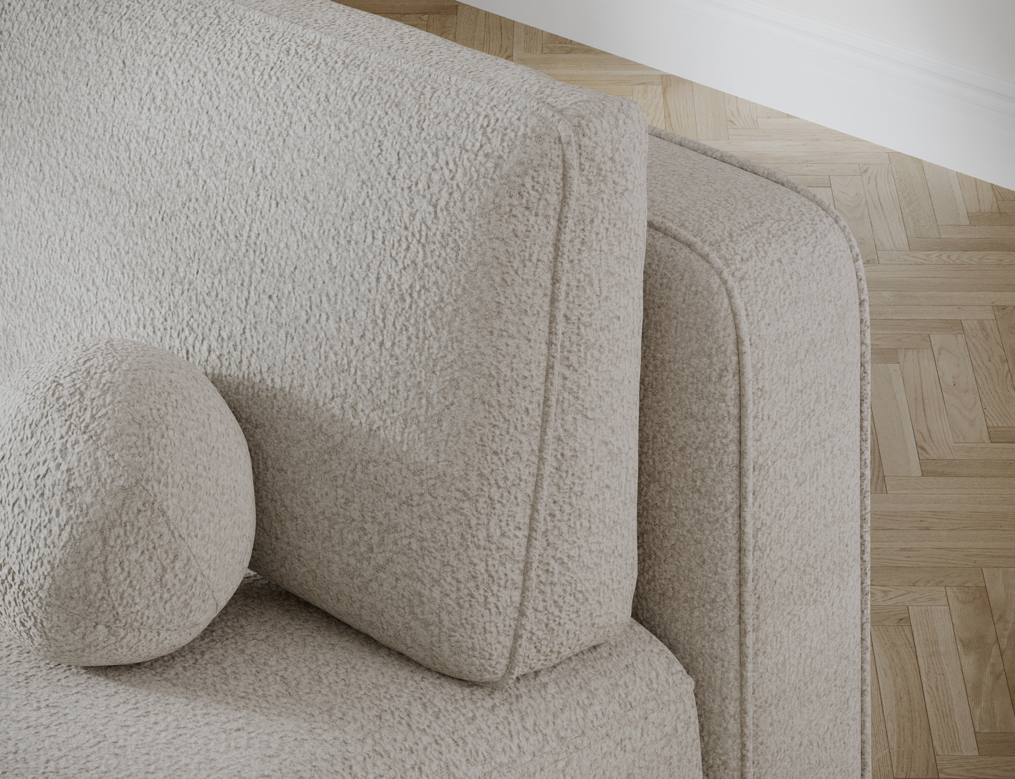 The Leyland sofa combines minimalist design with exceptional comfort. Its rounded shape and upholstered back make it look perfect both against a wall and as a centerpiece in your living room. With dimensions of 193 × 96 × 93 cm, it offers a comfortable space for the whole family, while its sturdy construction supports up to 210 kg. Thanks to its harmonious form and subtle details, the Leyland sofa fits beautifully into modern interiors inspired by Scandinavian or modern classic styles.