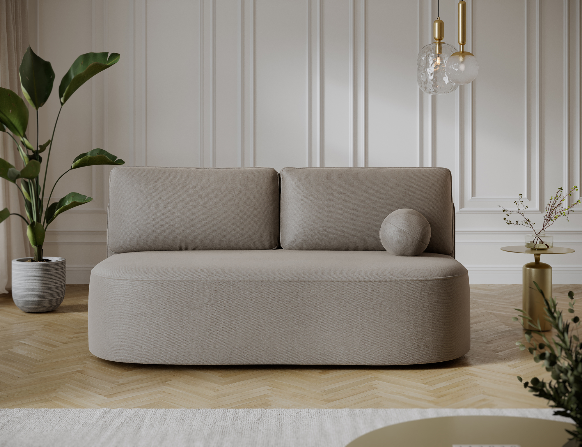 The Leyland sofa combines minimalist design with exceptional comfort. Its rounded shape and upholstered back make it look perfect both against a wall and as a centerpiece in your living room. With dimensions of 193 × 96 × 93 cm, it offers a comfortable space for the whole family, while its sturdy construction supports up to 210 kg. Thanks to its harmonious form and subtle details, the Leyland sofa fits beautifully into modern interiors inspired by Scandinavian or modern classic styles.