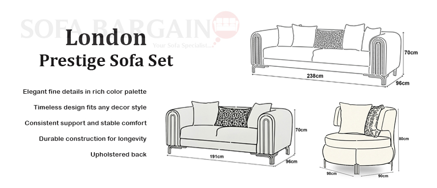 London Prestige Sofa Set brings the famous sophistication of London to your modern living spaces with its elegant design and comfort. This special sofa set caters to all kinds of needs with its options of single, double, and triple seating.
