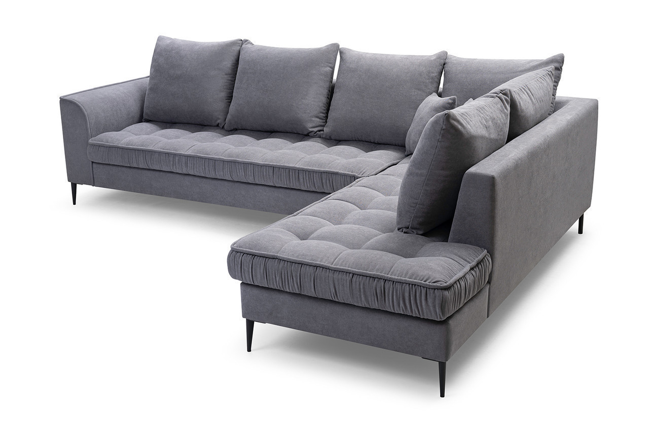 Lymington Cozy Corner Sofa is ​​constructed on a wooden frame with the addition of MDF and particleboard. The seat is supported by sinuous springs, which provide flexibility and prevent sagging during everyday use. The backrest and sides are made of softwood, further increasing their resistance to mechanical damage. The entire chair rests on easily removable metal legs.