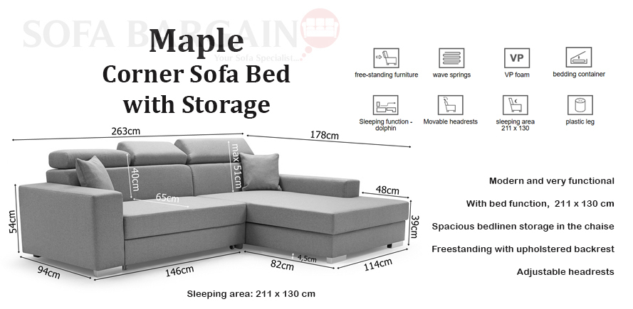 Discover a new level of comfort and functionality in your living room! The Maple Corner Sofa Bed with Storage combines well-thought-out design, durability, and ample relaxation space. Its modern lines and carefully crafted details ensure years of comfort.