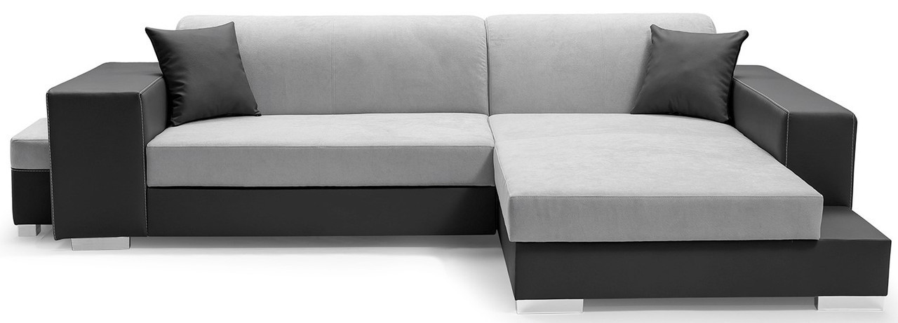 Stretch out or entertain in style with the Modbury Corner Sofa Bed with Storage & Pouf: