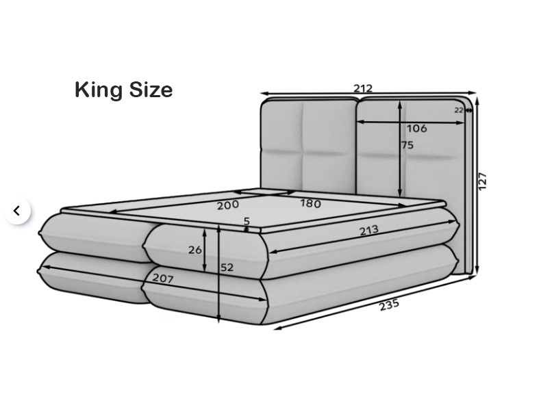 Bed width: D-172 cm, Q-192 cm, K-212 cm