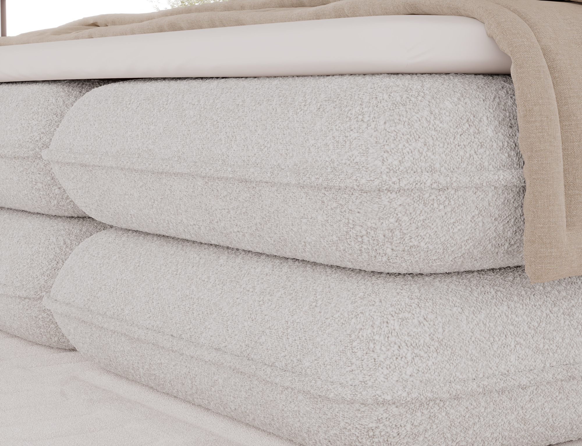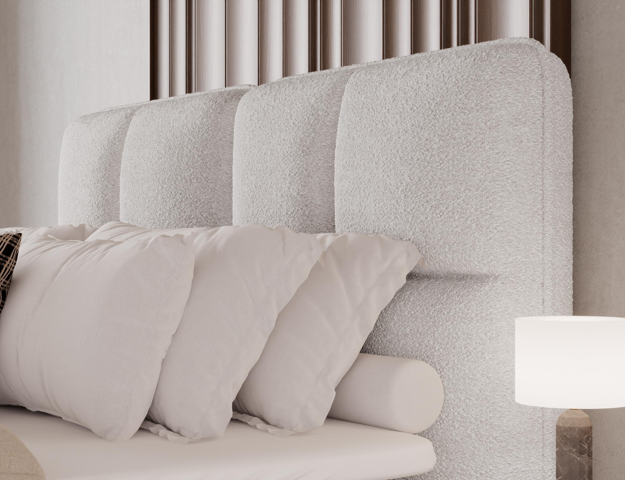 Base Colour: White Boucle Fabric / Pillows & Bedlinen Not Included