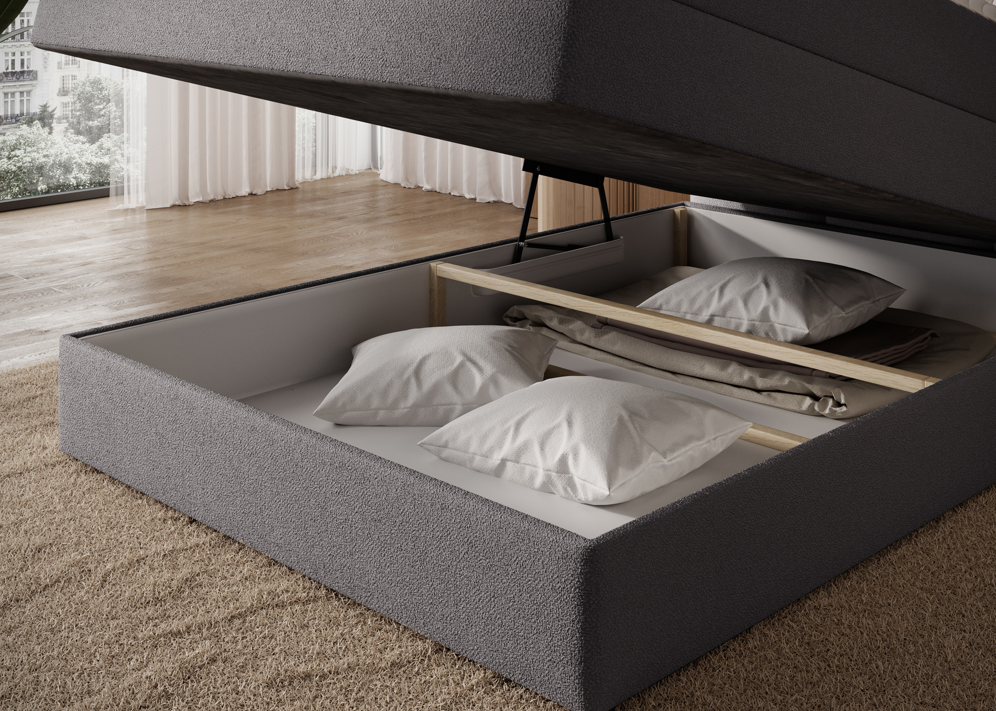 The Singles Spring Box Bed is available in two space-efficient sizes – 120x200 cm and 140x200 cm – making it ideal for smaller bedrooms, guest rooms, or studio apartments. It features a built-in bedding storage compartment, allowing you to keep your space tidy while optimizing functionality without sacrificing style.