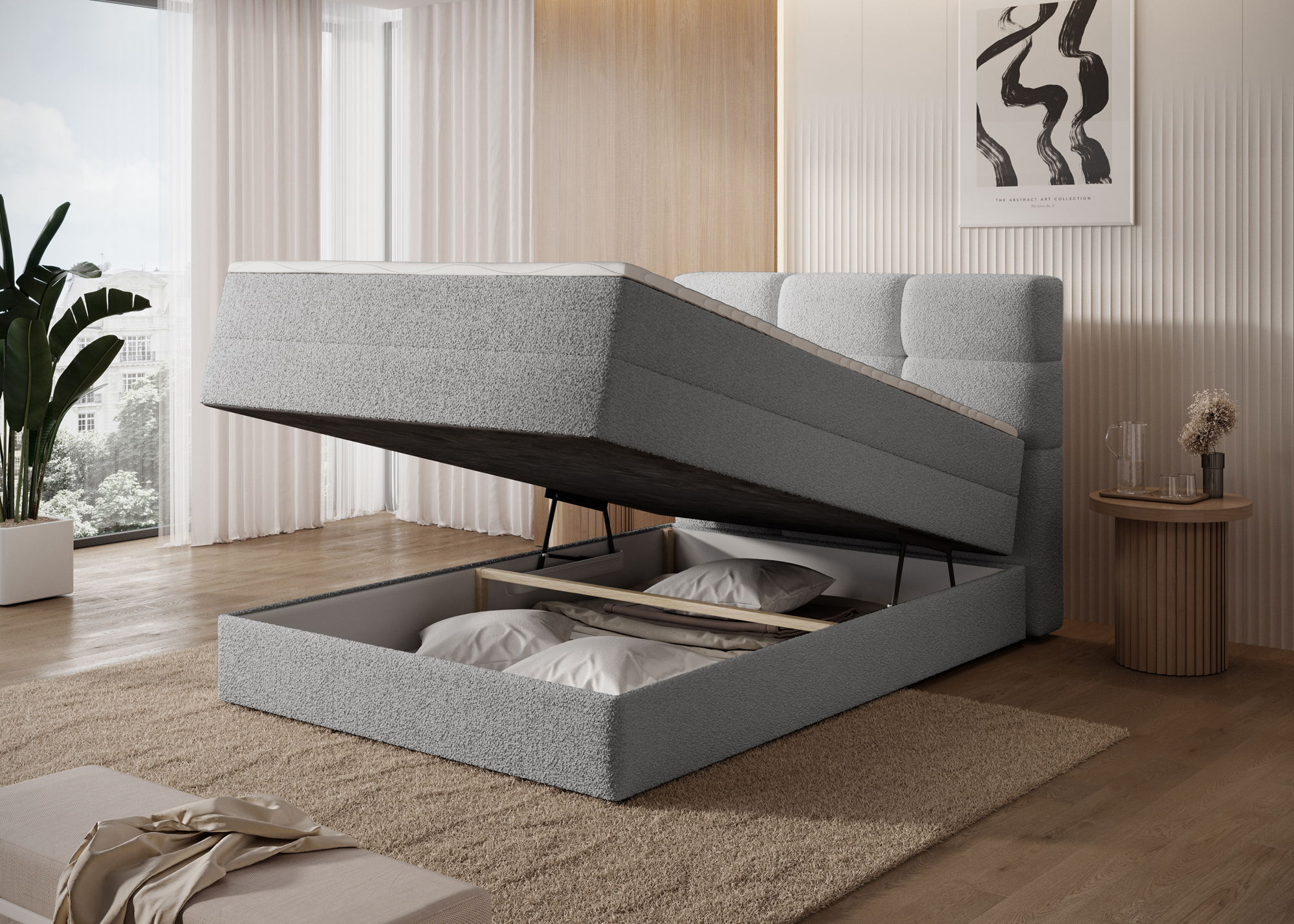 The Singles Spring Box Bed is available in two space-efficient sizes – 120x200 cm and 140x200 cm – making it ideal for smaller bedrooms, guest rooms, or studio apartments. It features a built-in bedding storage compartment, allowing you to keep your space tidy while optimizing functionality without sacrificing style.