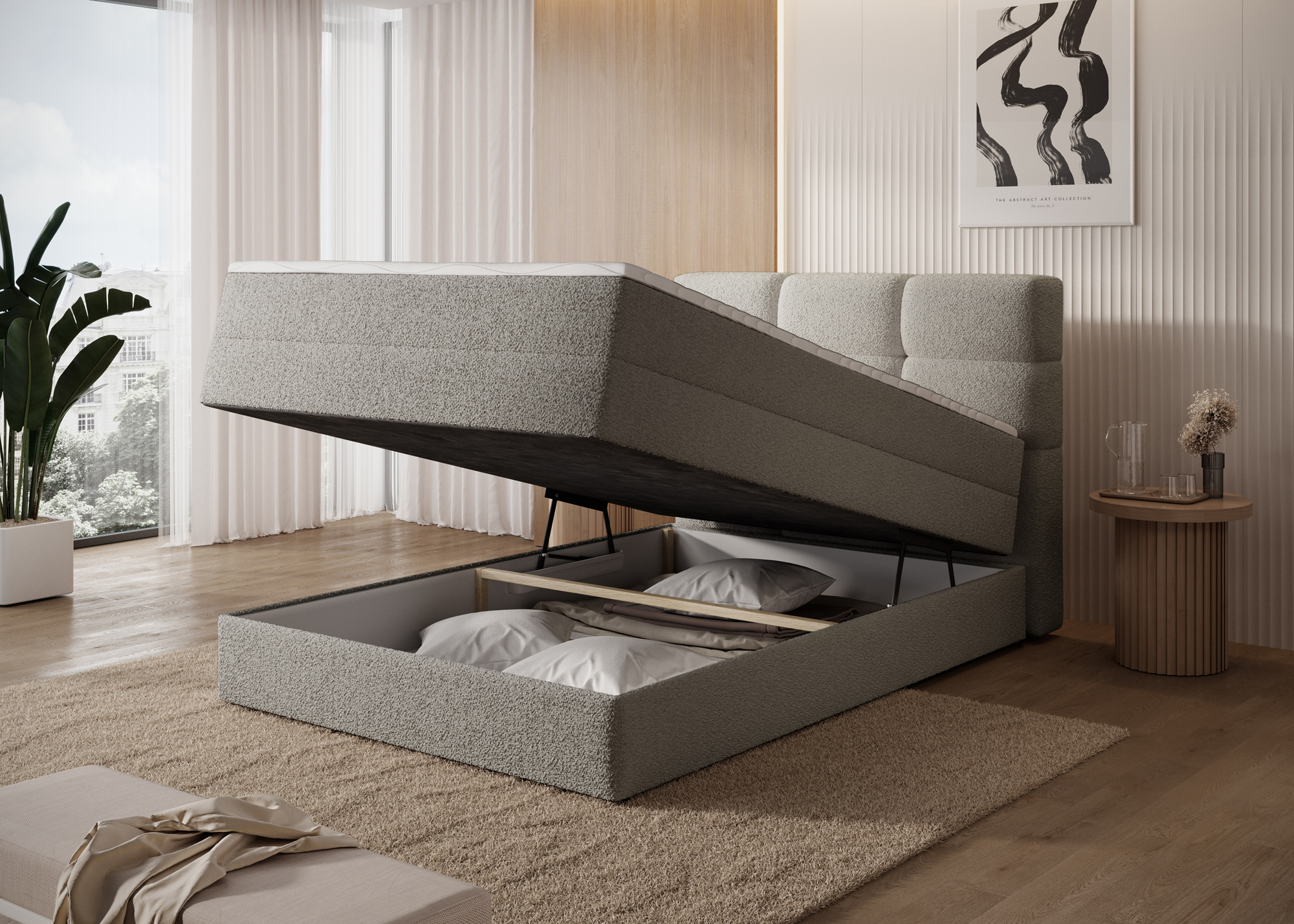 The Singles Spring Box Bed is available in two space-efficient sizes – 120x200 cm and 140x200 cm – making it ideal for smaller bedrooms, guest rooms, or studio apartments. It features a built-in bedding storage compartment, allowing you to keep your space tidy while optimizing functionality without sacrificing style.