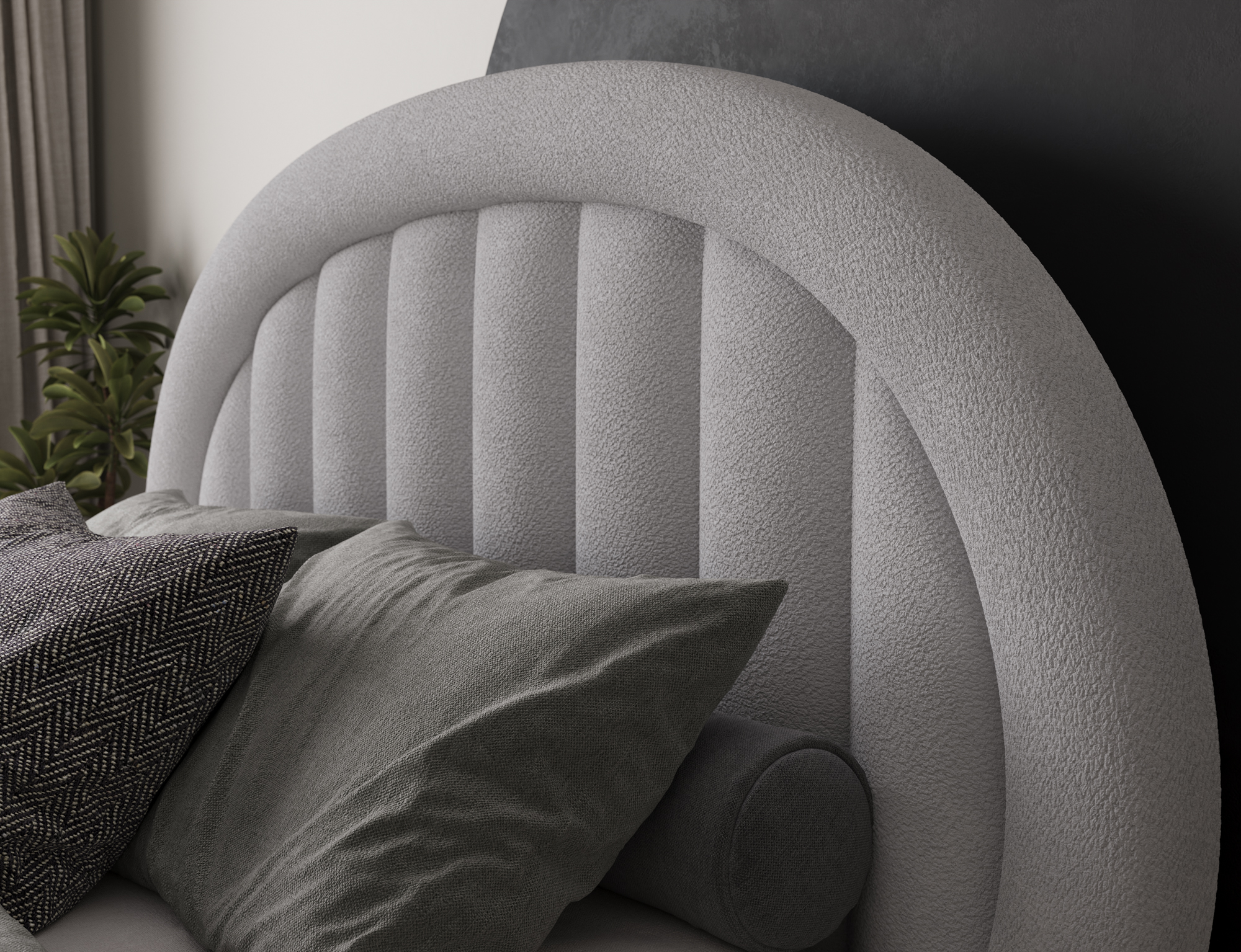 Base Colour: Light Grey Boucle / Pillows & Mattress Not Included
