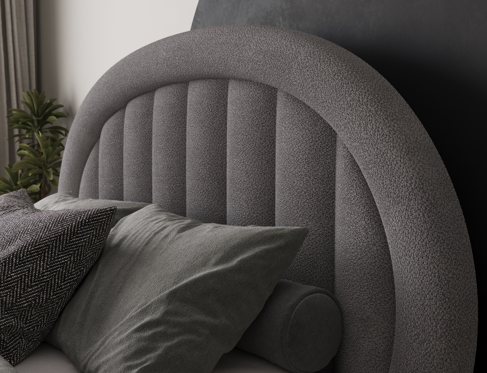 Base Colour: Grey Boucle / Pillows & Mattress Not Included