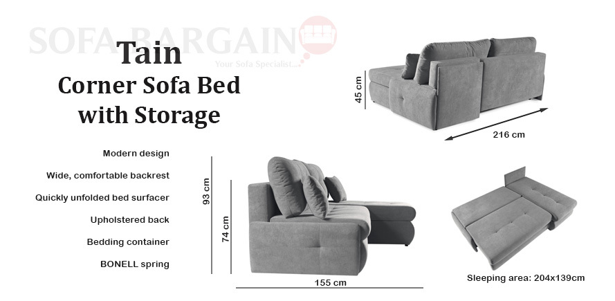 Do the above sentences sound familiar? So many questions, so few answers, but… are you sure? Both you and us are here to dispel all your doubts. We have the perfect piece of furniture for you. Choose our Tain Corner Sofa Bed with Storage, which will work in a living room of any style.