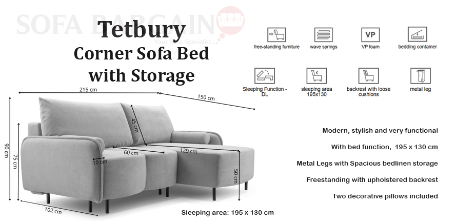Stretch out or entertain in style with the Tetbury Corner Sofa Bed with Storage: