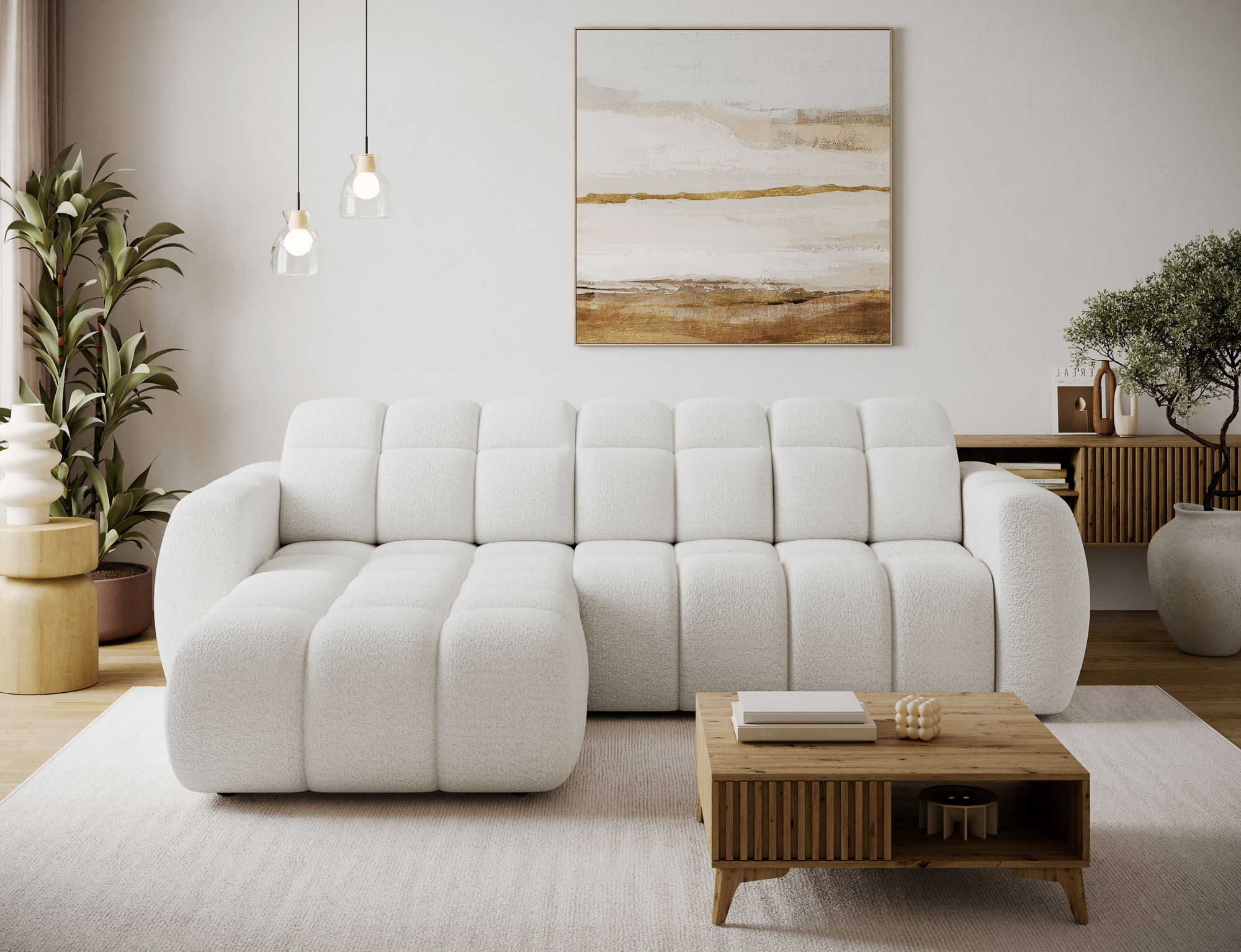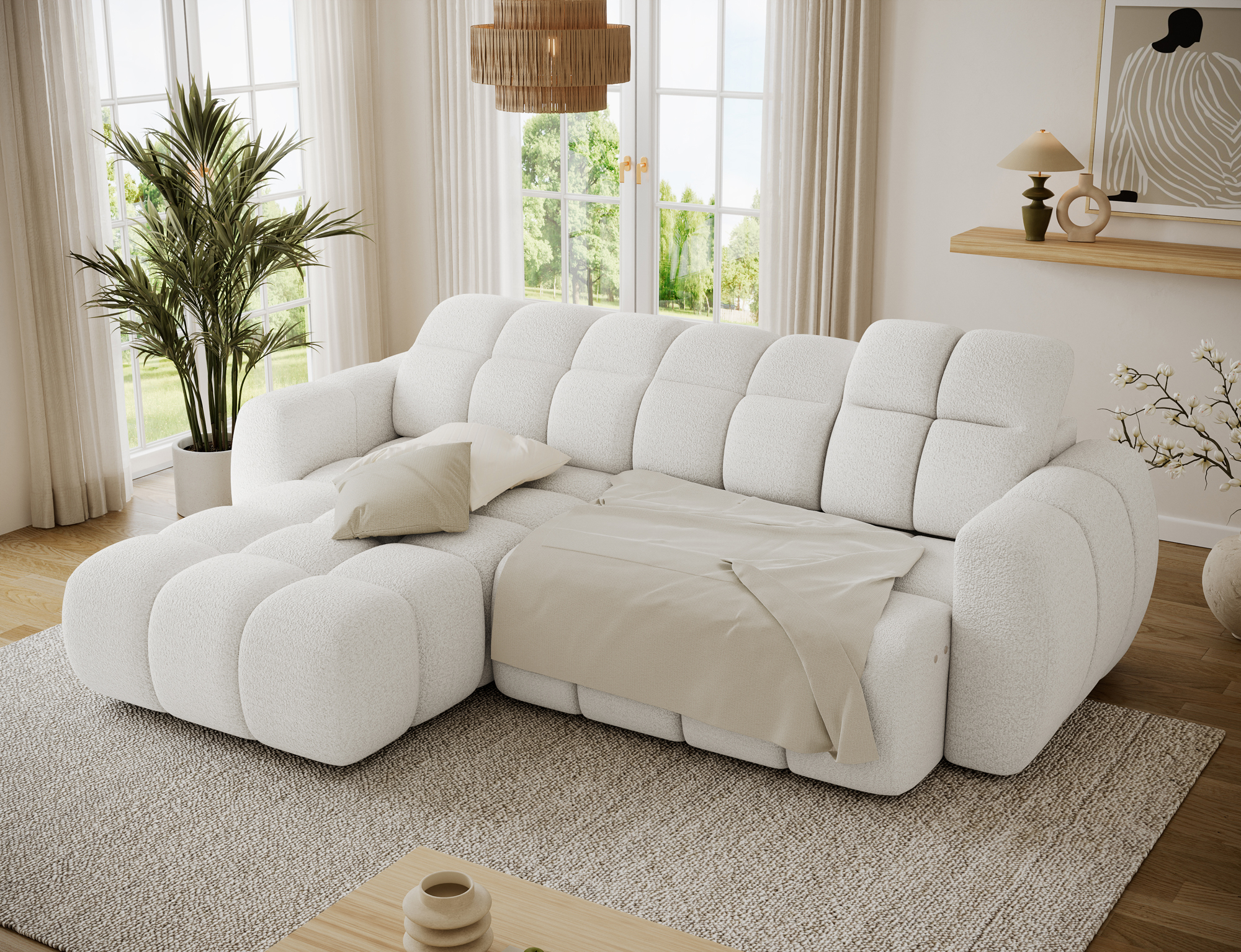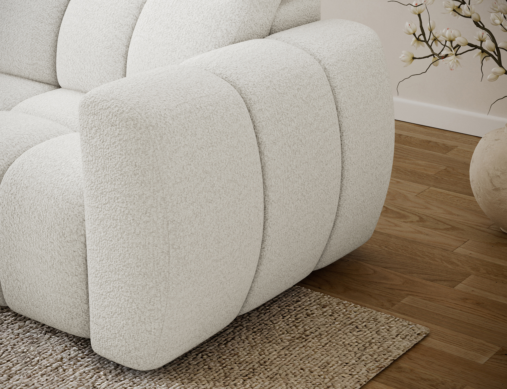 Every detail of the Titi corner sofa bed has been carefully designed. The fully upholstered back allows the sofa to be placed freely in the room, including in the center of the living area. Subtle 3 cm plastic legs provide stability while maintaining a light, modern appearance. High-quality materials and advanced technical solutions make the Titi corner sofa bed a perfect e-commerce product, combining aesthetics, durability, and everyday comfort.